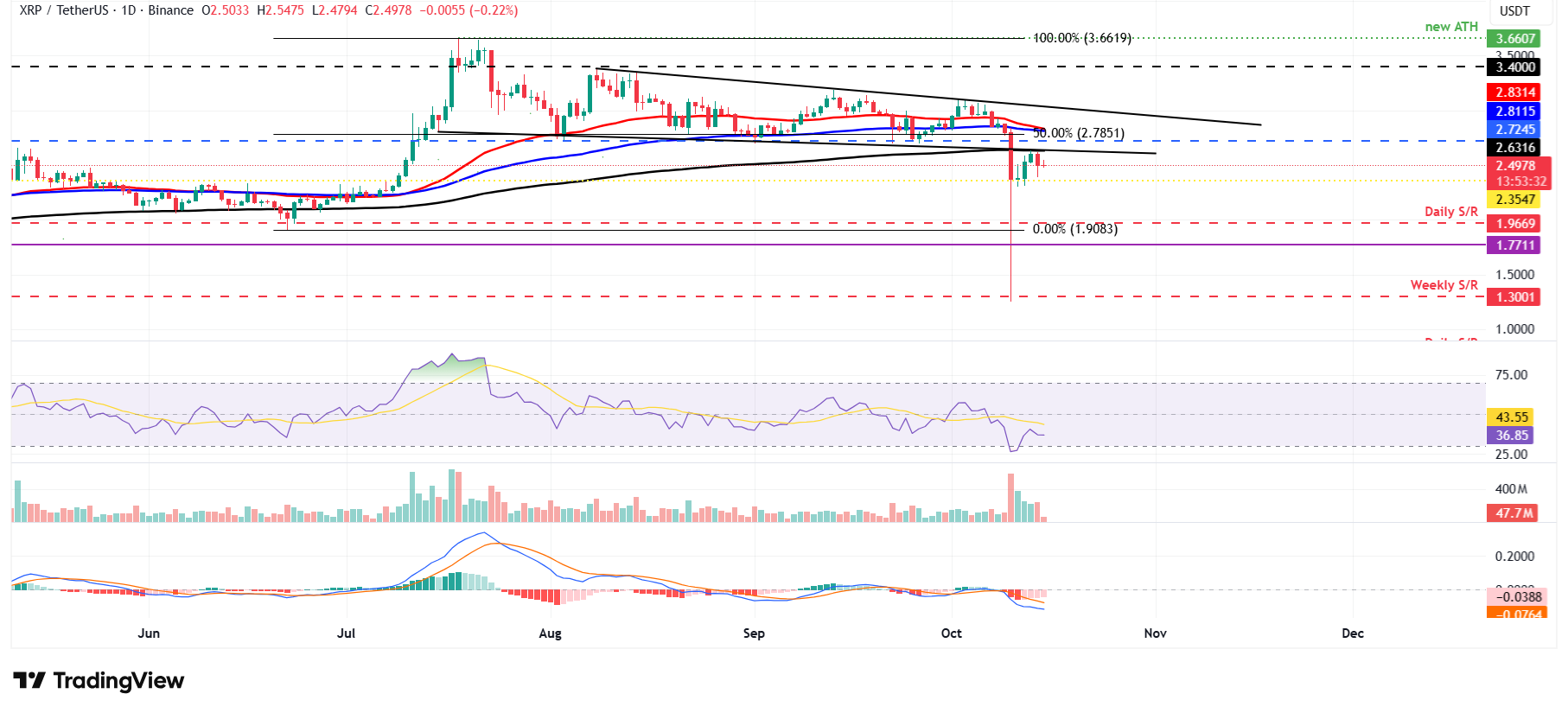 Si XRP continúa su corrección, podría extender la caída hacia el soporte diario en 2.35$.