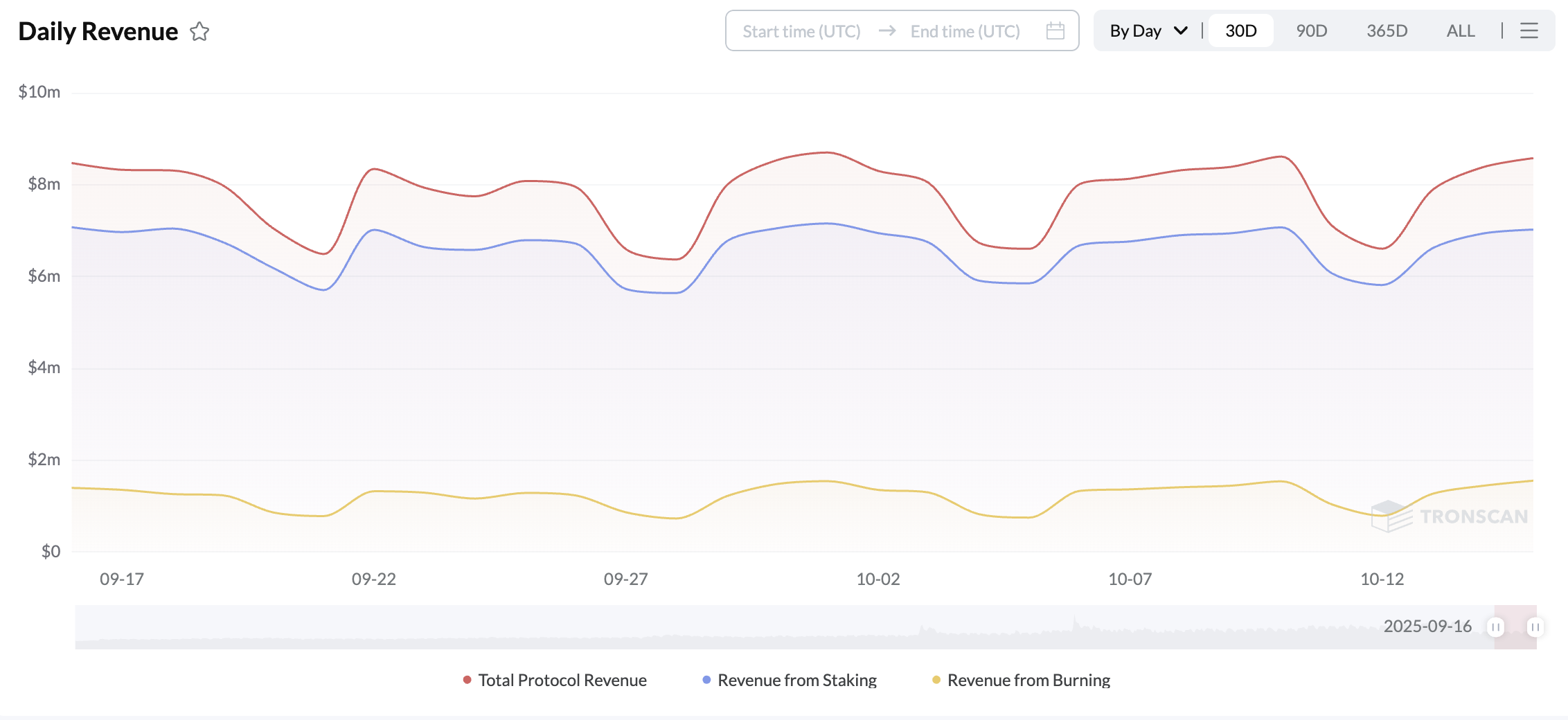 Tasa de generación de TRX a quema. Fuente: TronScan