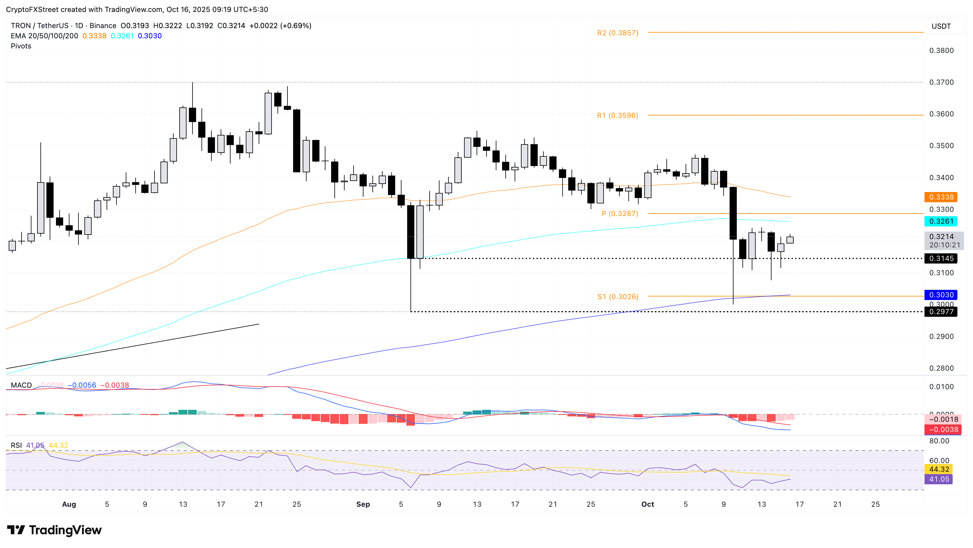 El precio de Tron (TRX) opera en verde con casi un 1% en el momento de escribir el jueves, extendiendo las ganancias del 0.76% del día anterior, mientras que el mercado de criptomonedas en general sigue siendo volátil. Tanto los datos en cadena como los de derivados sugieren una recuperación adicional para Tron, ya que la actividad de la red se mantiene estable y el interés minorista regresa.