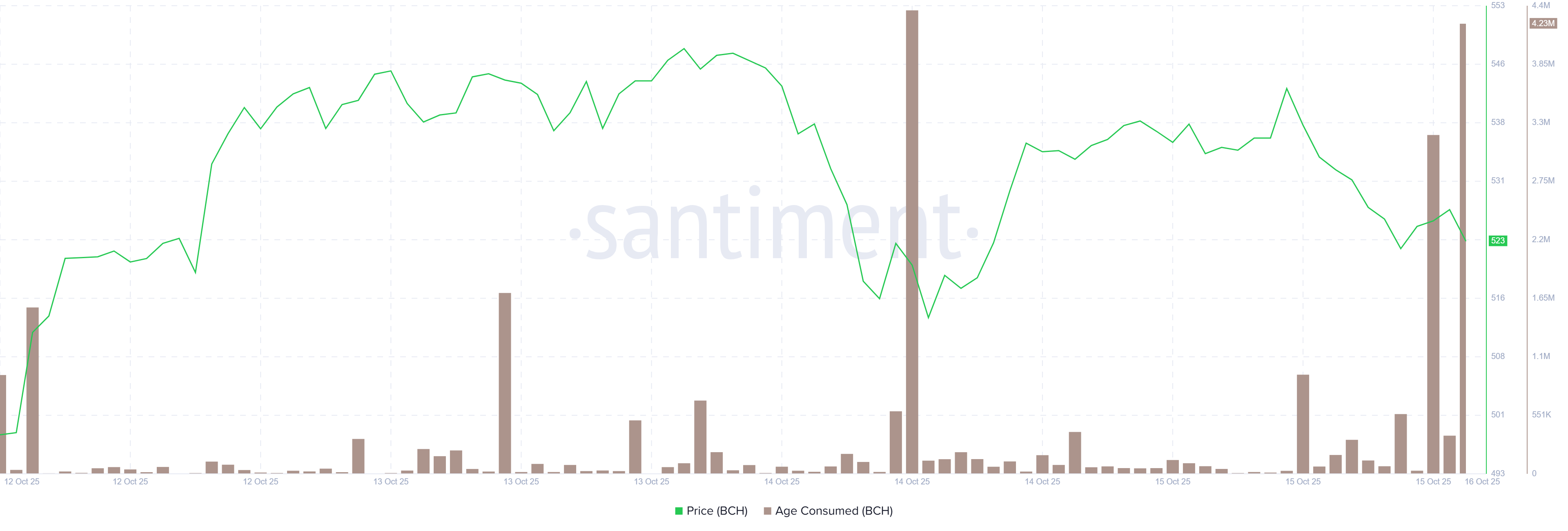 Gráfico de edad consumida de BCH. Fuente: Santiment