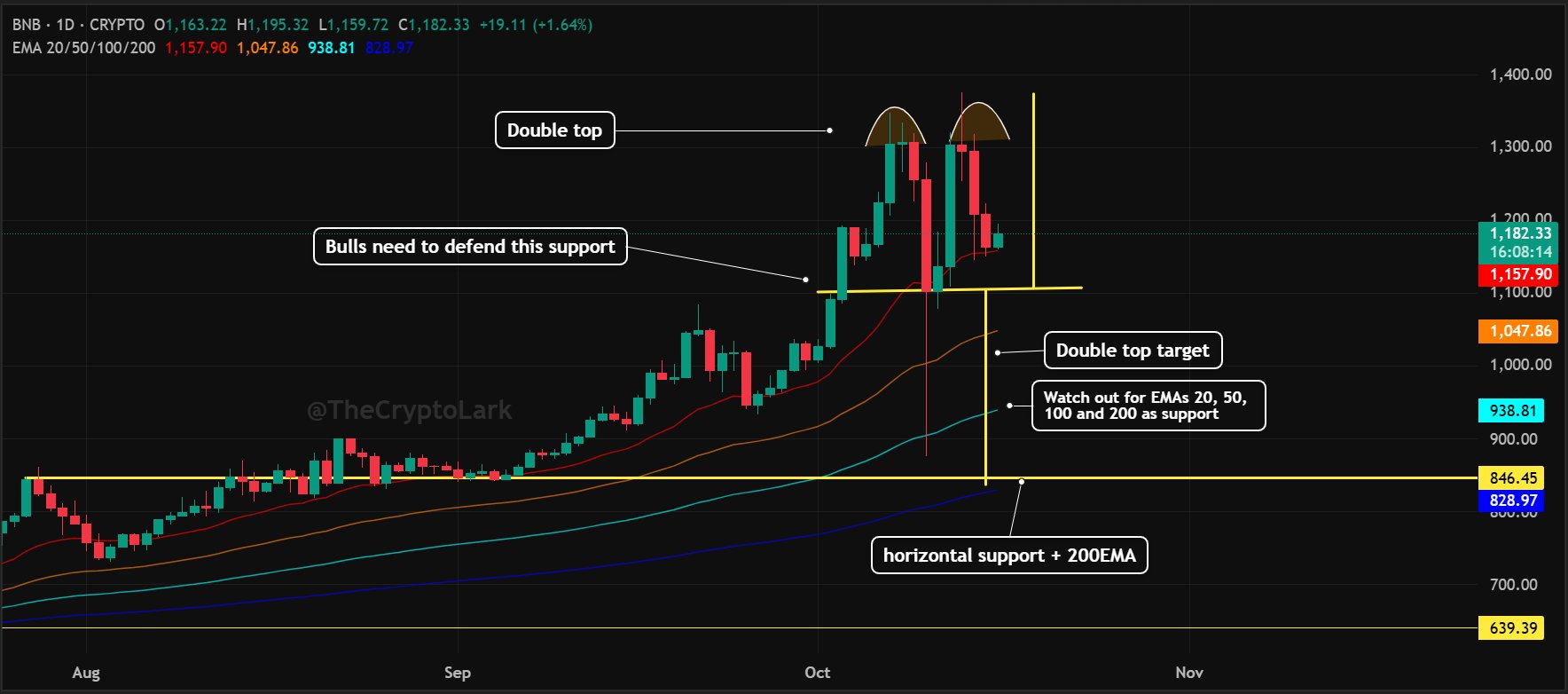 “BNB puede formar un doble techo. La única advertencia es la fortaleza de BNB en este ciclo. Observe su comportamiento alrededor del soporte.”