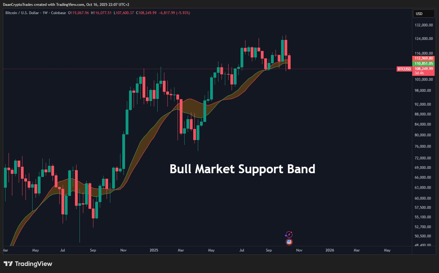 “BTC está luchando alrededor de la banda de soporte del mercado alcista y perdiendo. Permanecer en esta área es crucial para marcos de tiempo altos y cierres semanales.