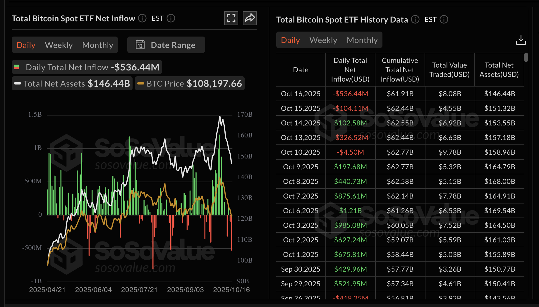 Estadísticas del ETF de Bitcoin | Fuente: SoSoValue