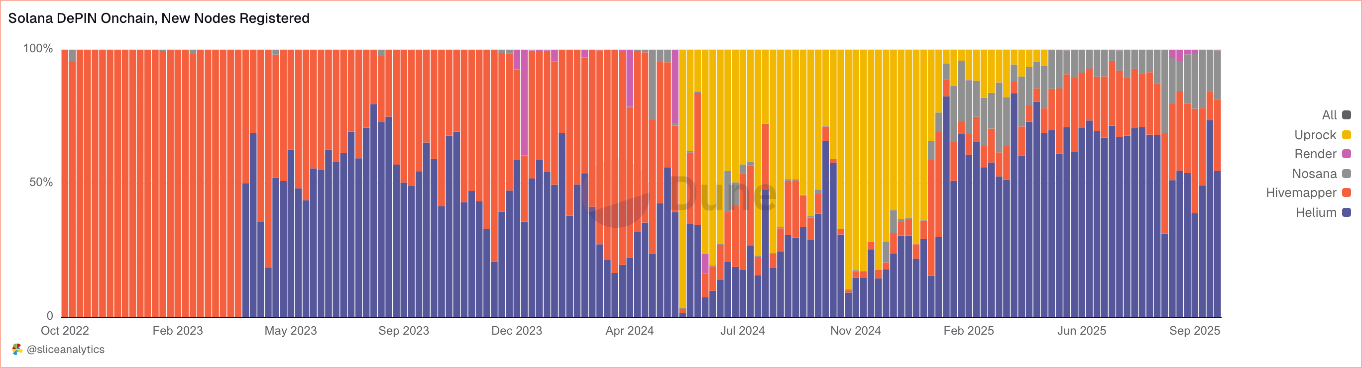 El informe de Dune “Onchain Layer of Solana DePIN” contó con 238,000 nodos activos en Helium, Hivemapper y Render, con casi 6 millones de dólares en ingresos on-chain. Kabra dijo que la “trayectoria aburrida” del sector muestra un valor duradero a medida que la infraestructura descentralizada se convierte en infraestructura cotidiana.