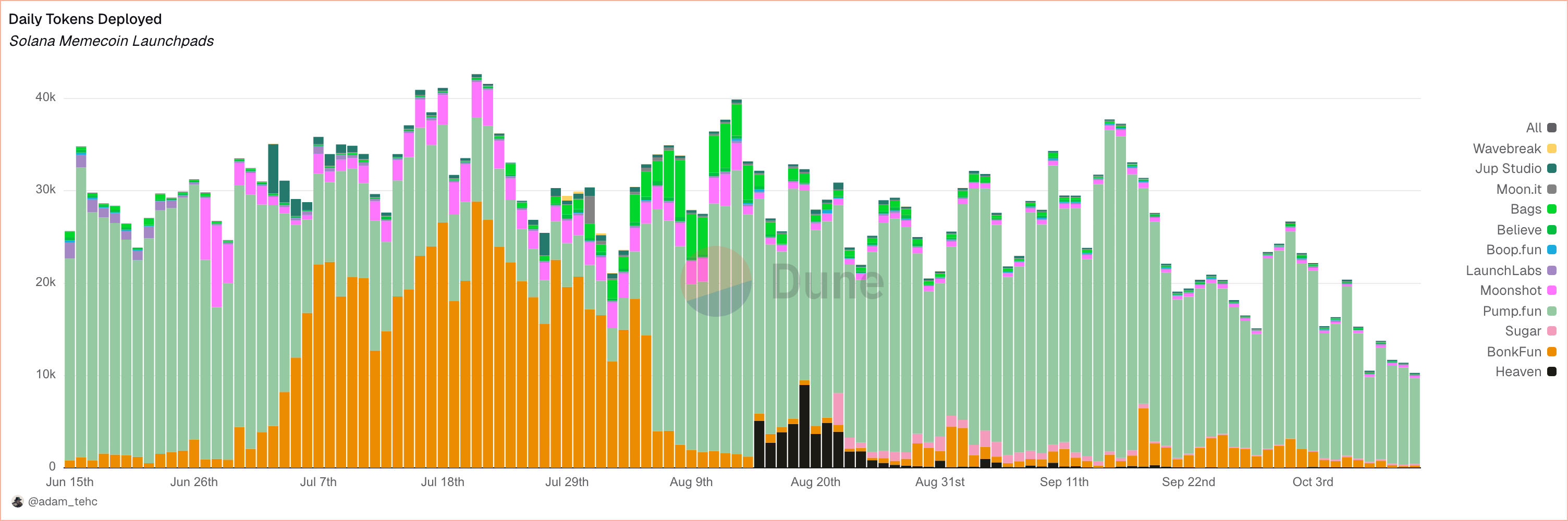 “En 24 horas, se lanzaron alrededor de 11,600 tokens en plataformas de Solana. Pump.fun solo albergó 10,704, pero solo el 0.7–0.8% ‘graduó’ a liquidez. Pump.fun mantiene alrededor de 79,600 usuarios activos diarios y 63 millones de dólares en volumen diario, generando 602,000 dólares en tarifas. La retención a nivel de token es mínima, pero el compromiso a nivel de plataforma es robusto.”