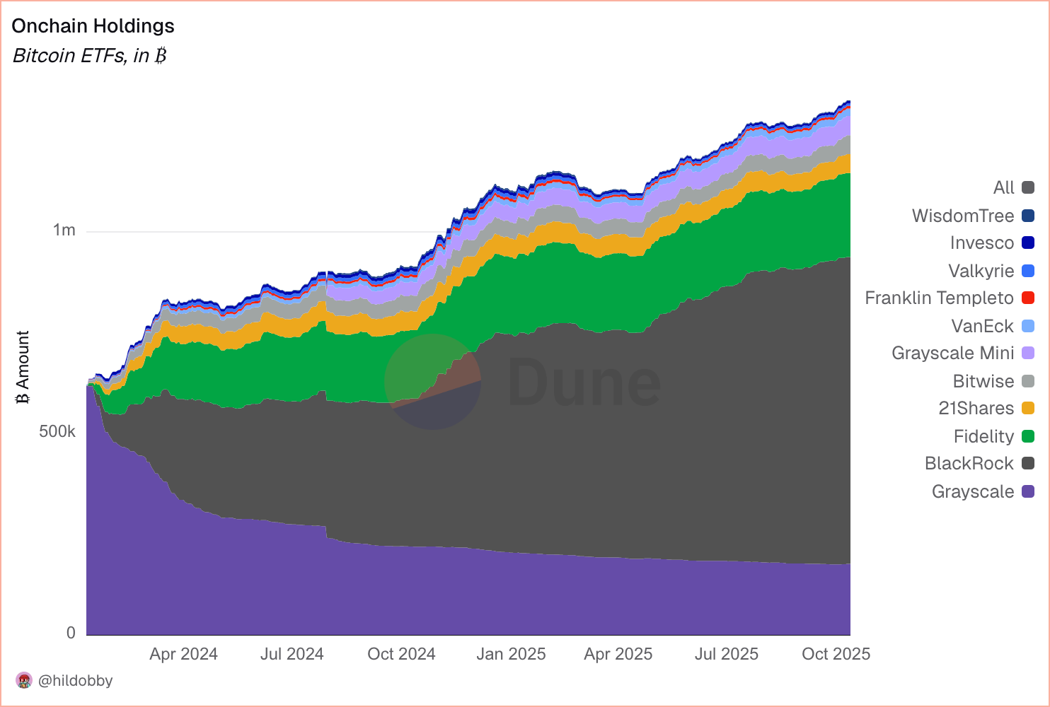 “Algunos holders están moviéndose de on-chain a ETFs, pero no son la mayoría,” dijo. “Las entradas institucionales siguen siendo masivas—decenas de miles de millones de dólares. Desde octubre de 2024, IBIT ha liderado el grupo y sigue siendo el único fondo con entradas constantes. Estados Unidos ahora posee alrededor del 90% de los activos globales de ETF.”