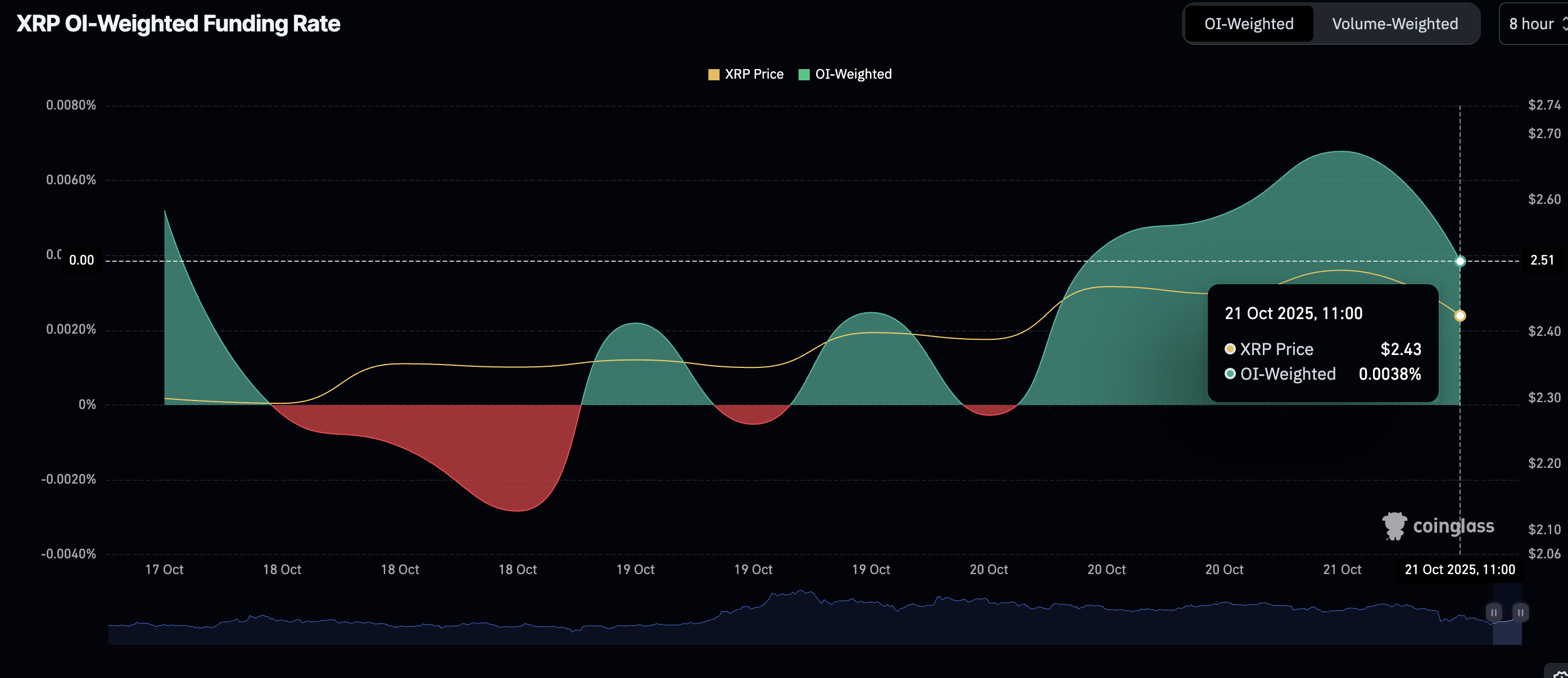 Tasa de financiamiento ponderada por OI de XRP | Fuente: CoinGlass