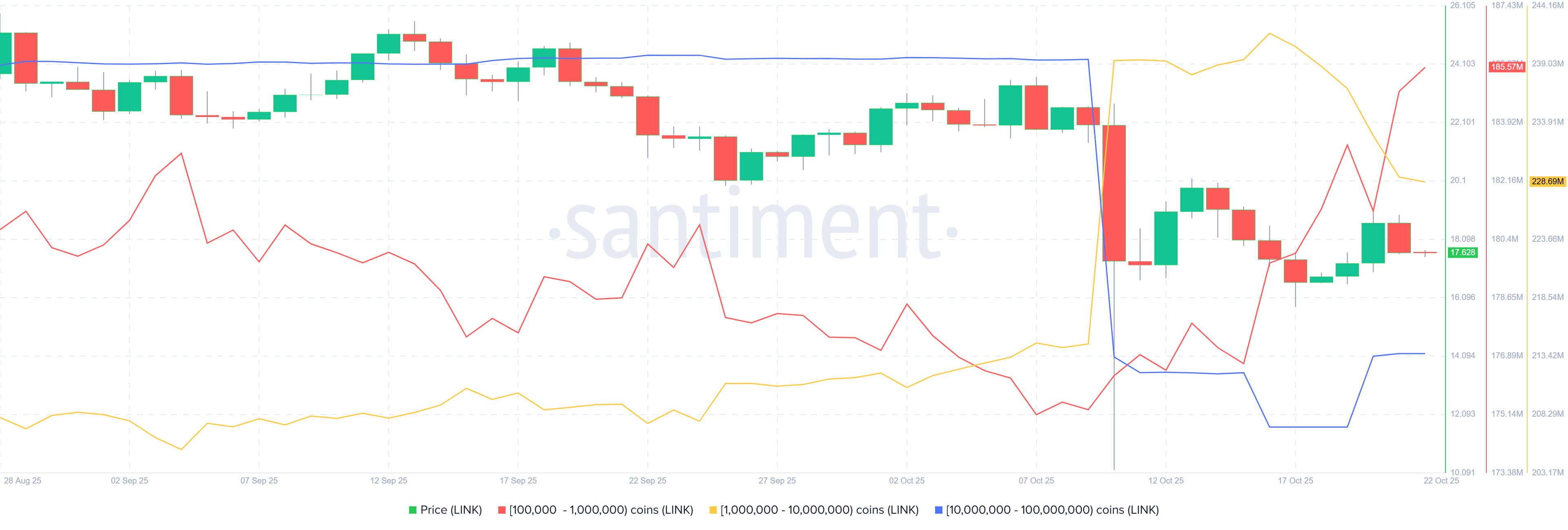 Los datos de Distribución de Oferta de Santiment respaldan una perspectiva alcista para Chainlink, ya que ciertas ballenas están comprando LINK en las recientes caídas de precios.