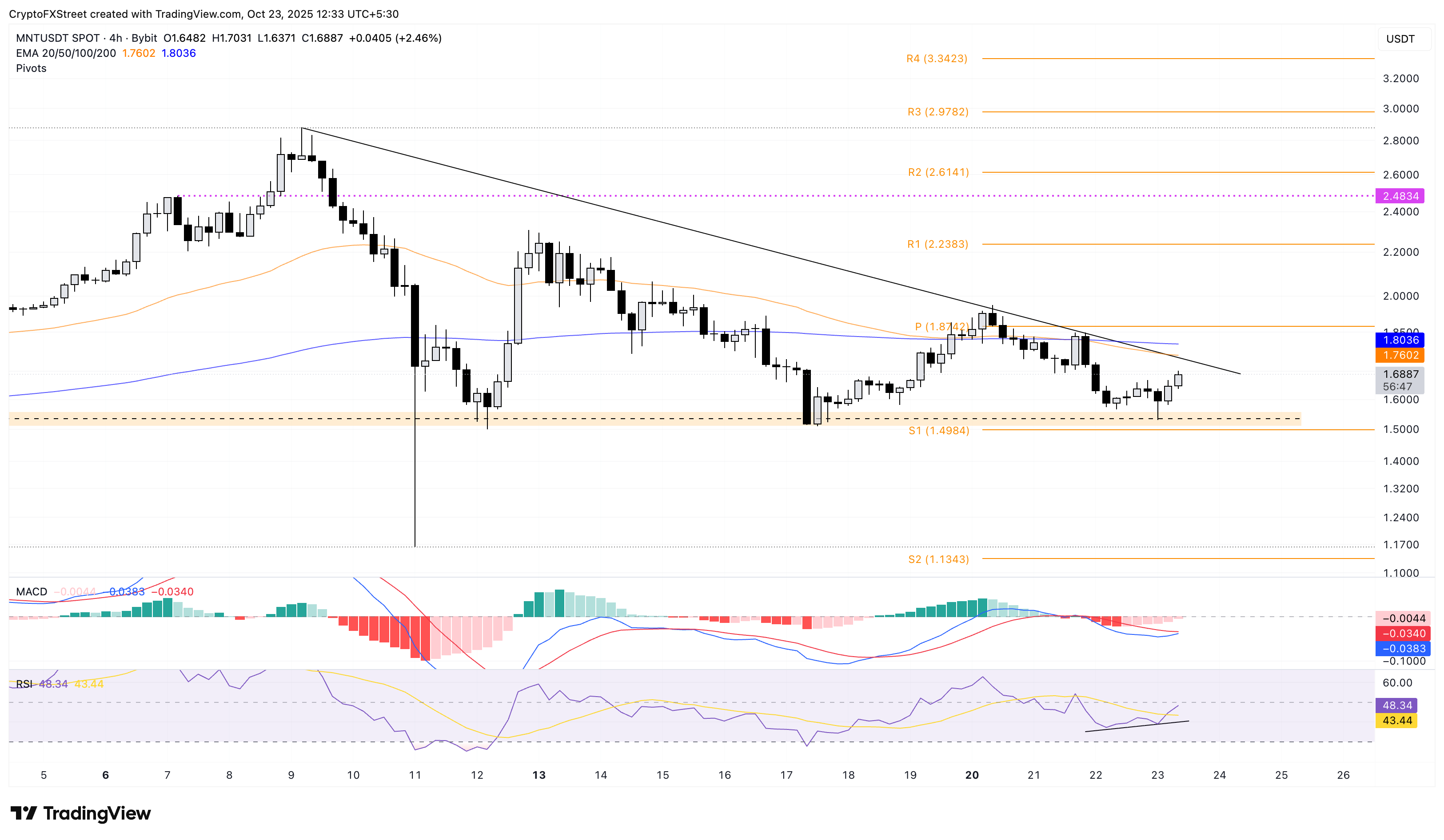 Mantle avanza más de un 5% en el momento de la prensa el jueves, tras tres días sucesivos de pérdidas. El rebote desde la zona de soporte de 1.50$ se acerca a una línea de tendencia de resistencia local formada al conectar los picos del 9 de octubre y del 21 de octubre en el gráfico de precios de 4 horas.