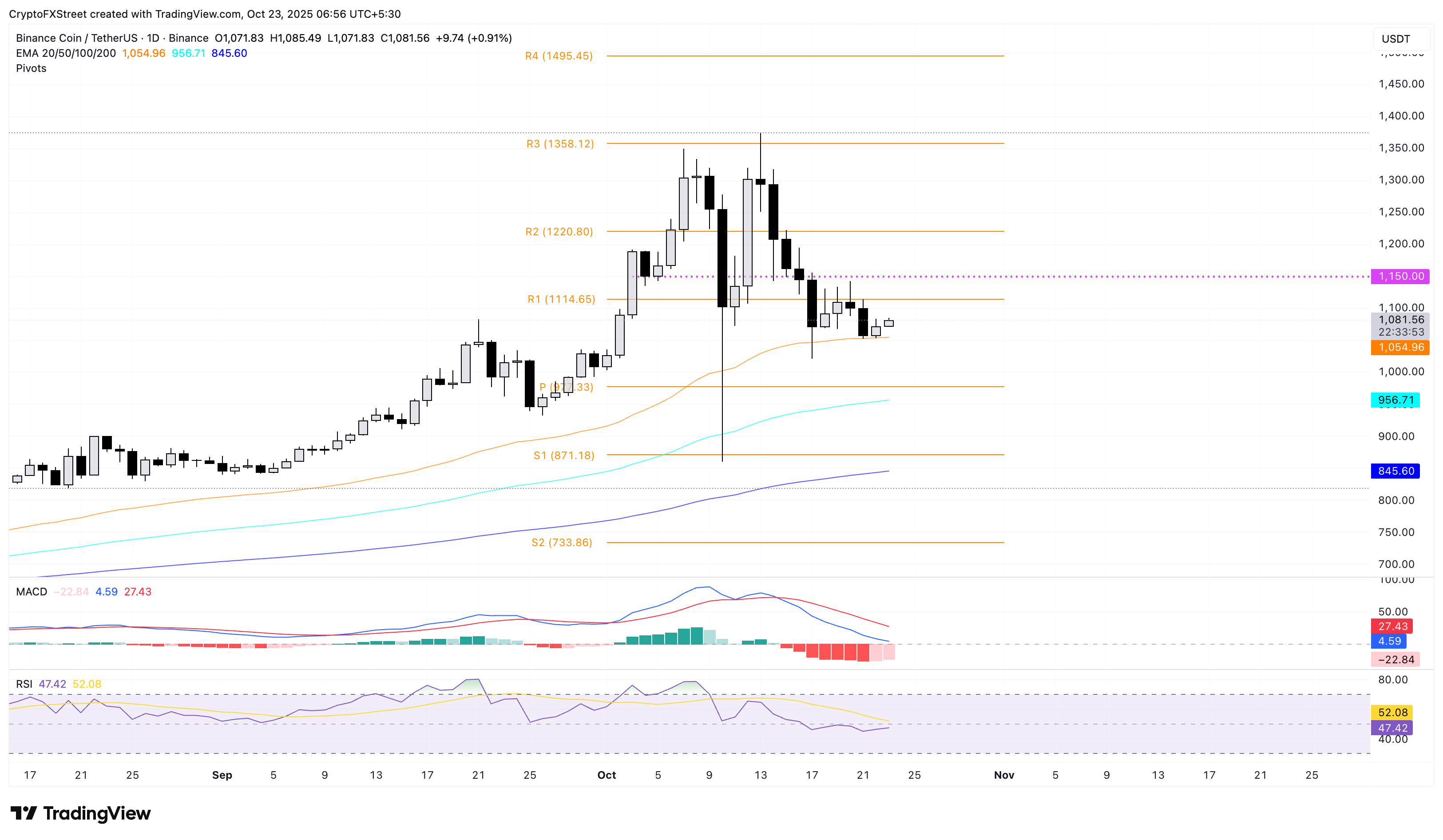 Si BNB cae por debajo de la EMA de 50 días, anularía la carrera de recuperación y pondría en riesgo una posible caída hacia el Punto Pivote central en 977$.