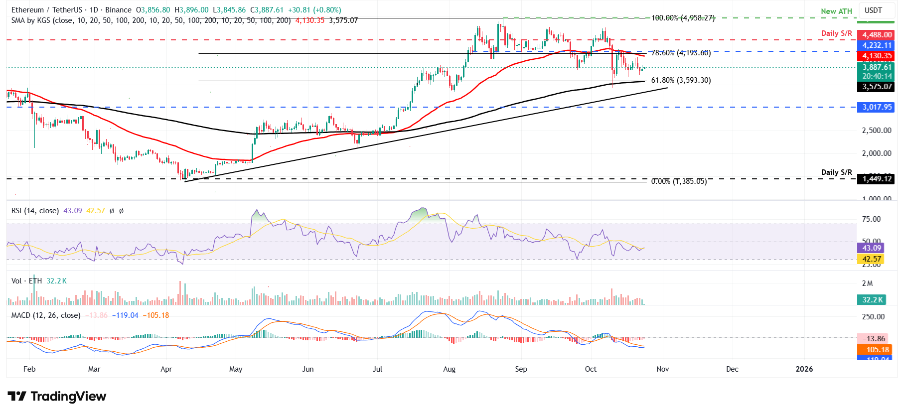 El precio de Ethereum corrigió más del 4% la semana pasada tras ser rechazado en la resistencia diaria de 4.232$. ETH continuó su corrección, cayendo un 5.11% en la primera mitad de esta semana, pero se recuperó ligeramente el jueves. En el momento de escribir el viernes, ETH se está recuperando, negociándose por encima de 3.800$.