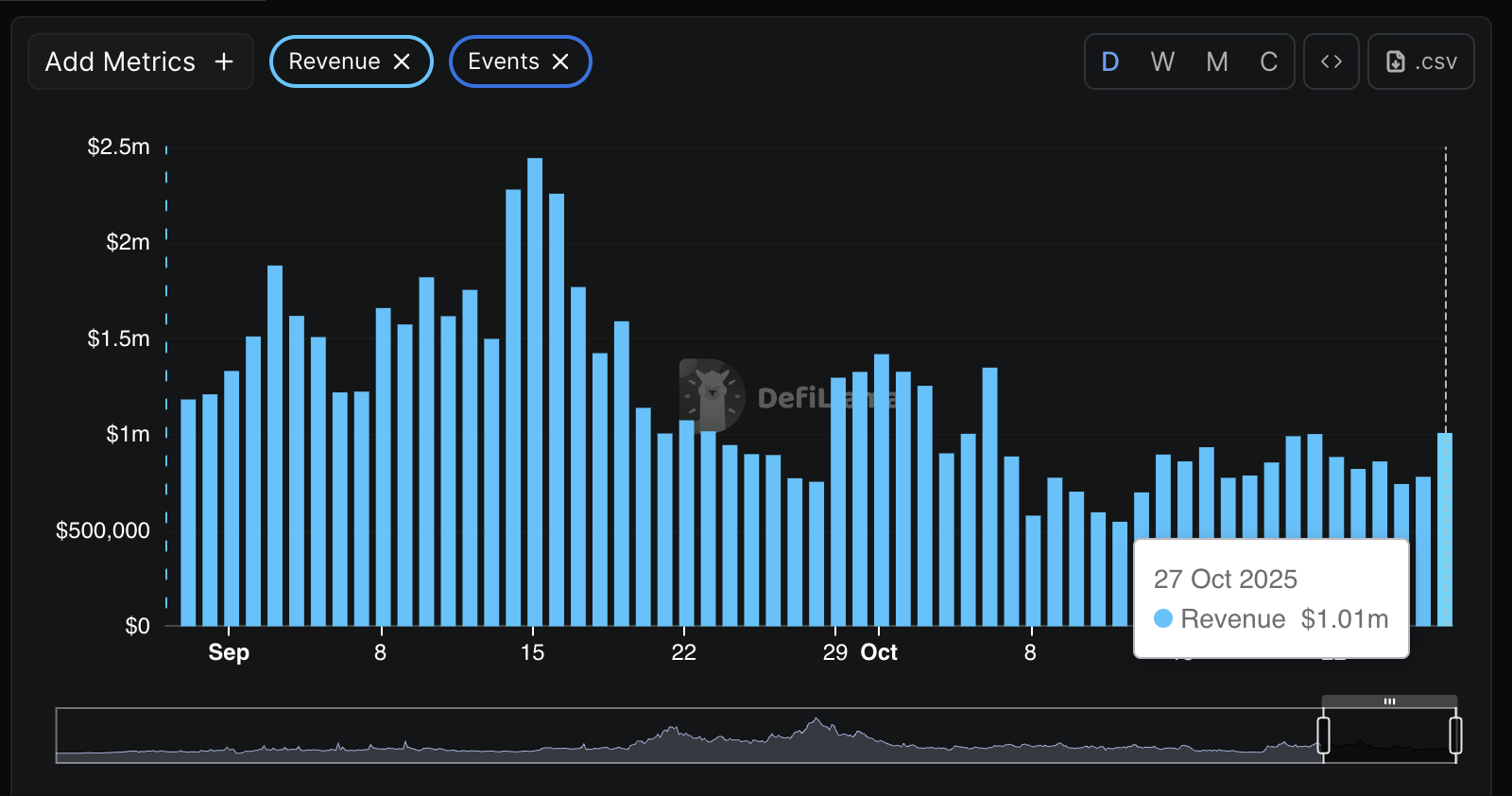 Mientras tanto, la plataforma de lanzamiento de monedas meme está experimentando un resurgimiento en los ingresos de la plataforma, que promedian 1.01 millones de dólares, en comparación con aproximadamente 545.000$ el 12 de octubre.