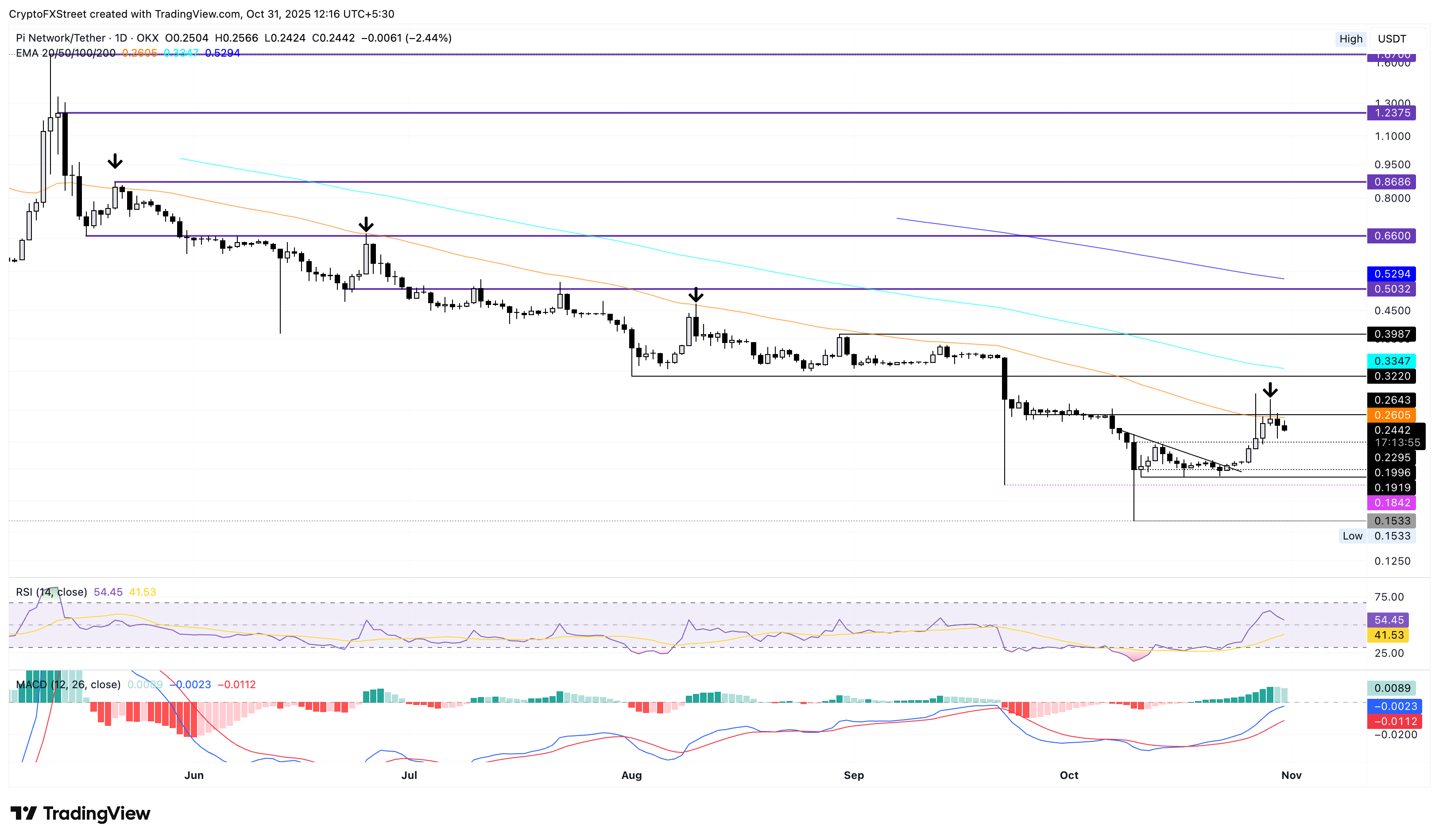 En el lado positivo, un posible breakout de la EMA de 50 días en 0.2605$ podría extender la recuperación de Pi Network a 0.3220$, marcado por el mínimo del 1 de agosto.