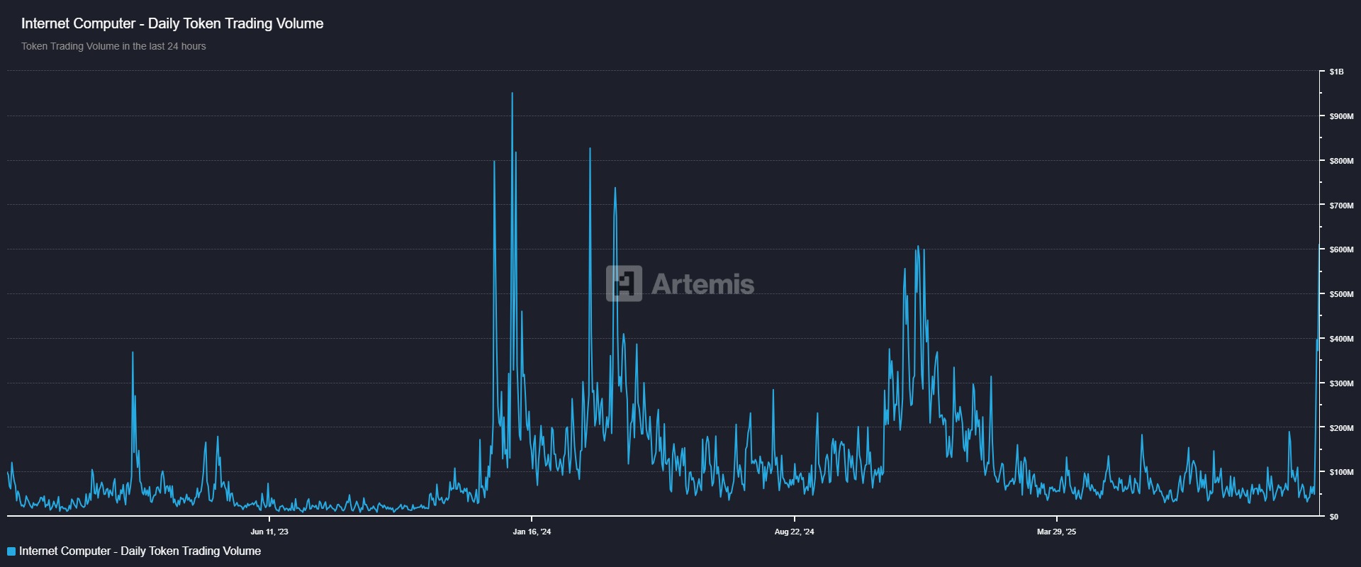El volumen diario de comercio de tokens de Artemis indica que el volumen agregado diario de comercio del ecosistema ICP alcanzó los 672 millones $ el martes, el volumen más alto del año hasta la fecha y niveles no vistos desde mayo de 2024. Este aumento de volumen indica un aumento en el interés de los traders y la liquidez en la cadena de Internet Computer, mejorando su perspectiva alcista.