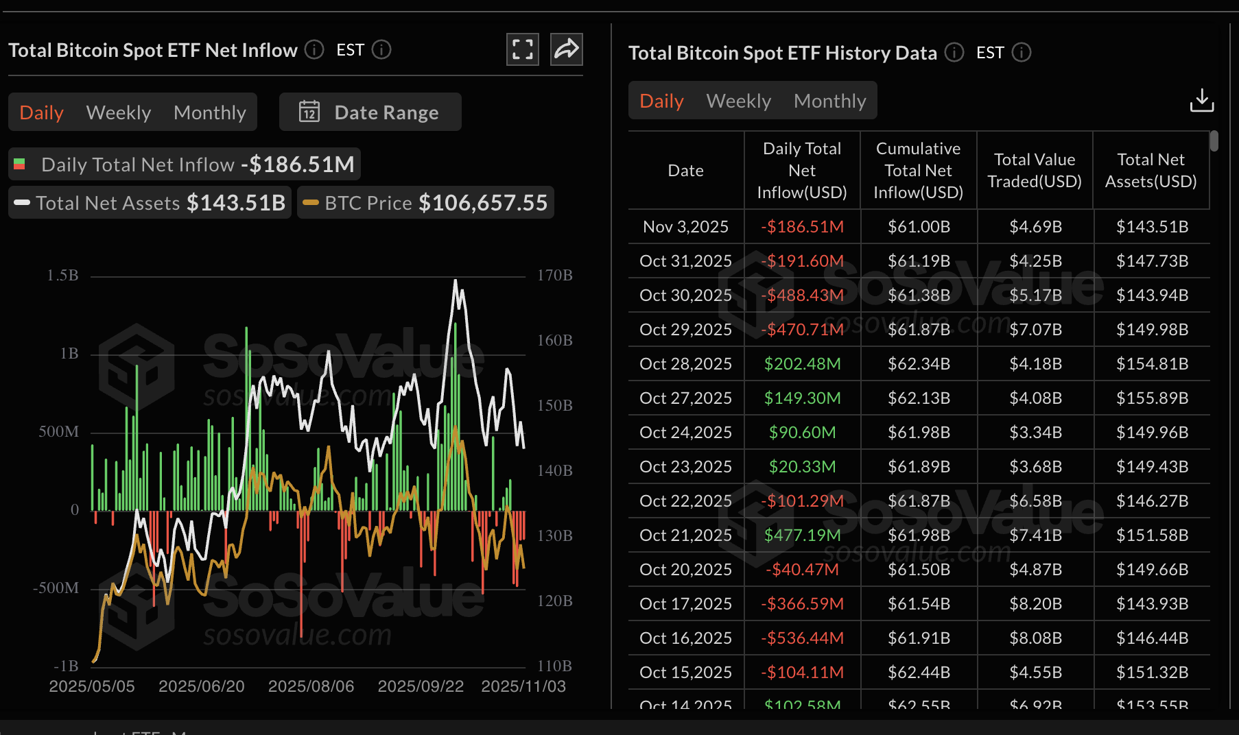 Estadísticas del ETF de Bitcoin | Fuente: SoSoValue