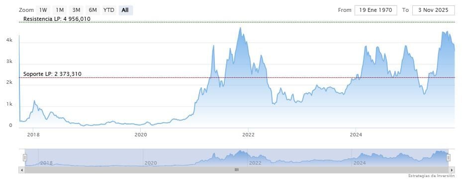 El soporte a largo plazo se encuentra en los 2.373,31 dólares. Mientras, los indicadores de Ei se muestran mixtos.