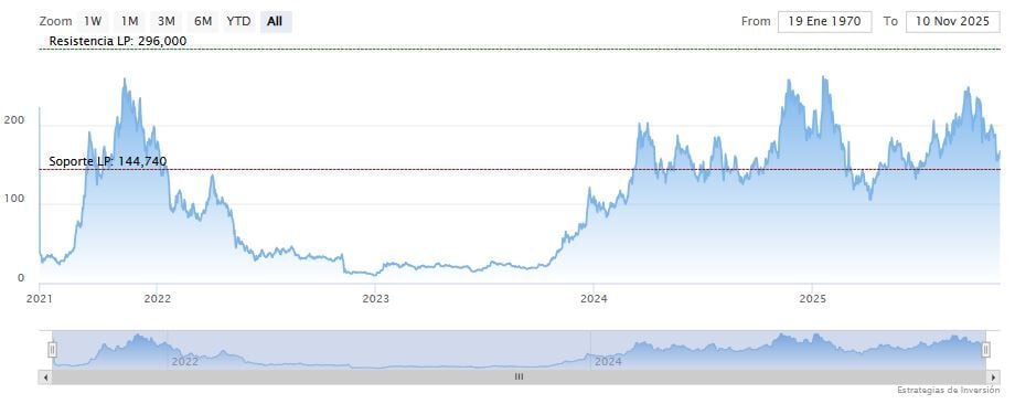 El soporte a mediano plazo se encuentra en los 145.72 dólares. Mientras, los indicadores de Ei se muestran mixtos.
