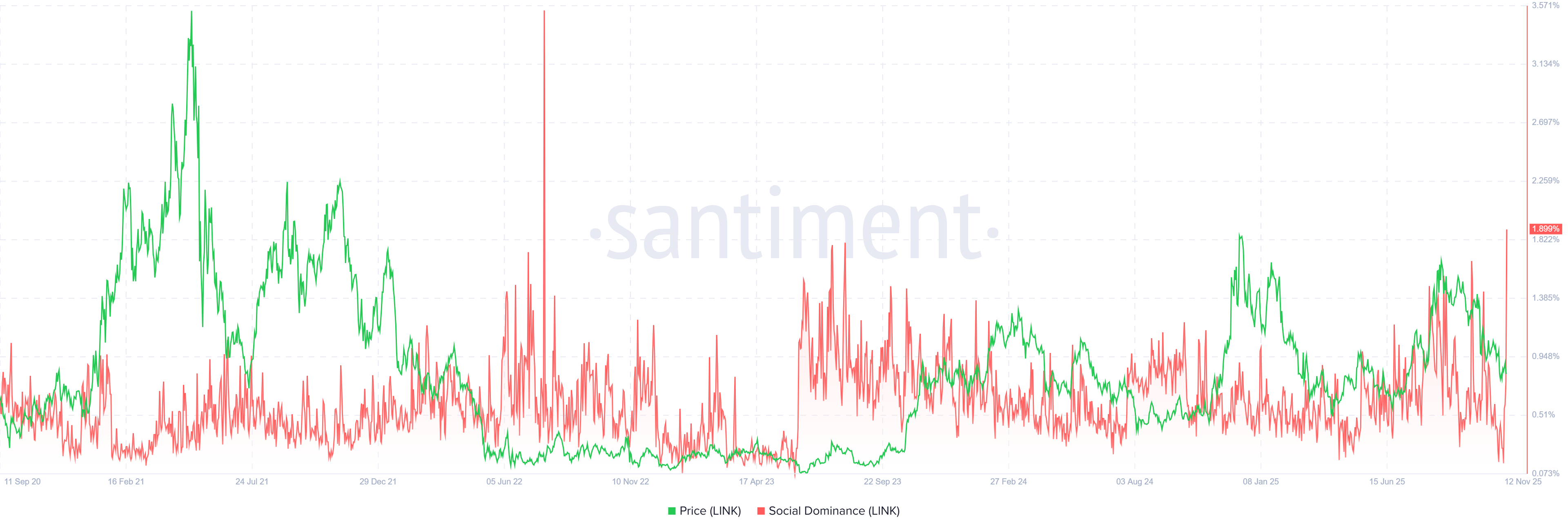 El indicador de Dominancia Social de Santiment para Chainlink apoya una perspectiva alcista. El índice mide la participación de las discusiones relacionadas con LINK en los medios de criptomonedas. Ha aumentado del 0.15% el sábado al 1.89% el miércoles, el nivel más alto desde julio de 2022. Este aumento indica un creciente interés de los inversores y una mayor participación de la comunidad en torno a Chainlink.