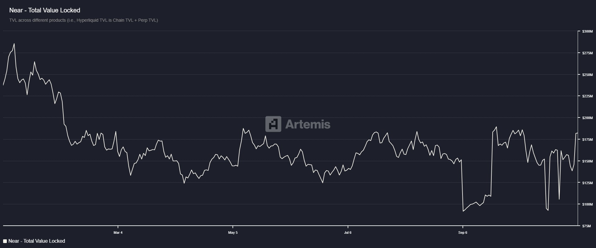 Los datos de Arthemis Terminal muestran que el TVL de NEAR aumentó a 182,1 millones de dólares el miércoles, desde 105,5 millones de dólares el 29 de octubre, y ha estado aumentando de manera constante desde entonces. El aumento del TVL indica una creciente actividad e interés en el ecosistema de Near Protocol, sugiriendo que más usuarios están depositando o utilizando activos en protocolos basados en NEAR.