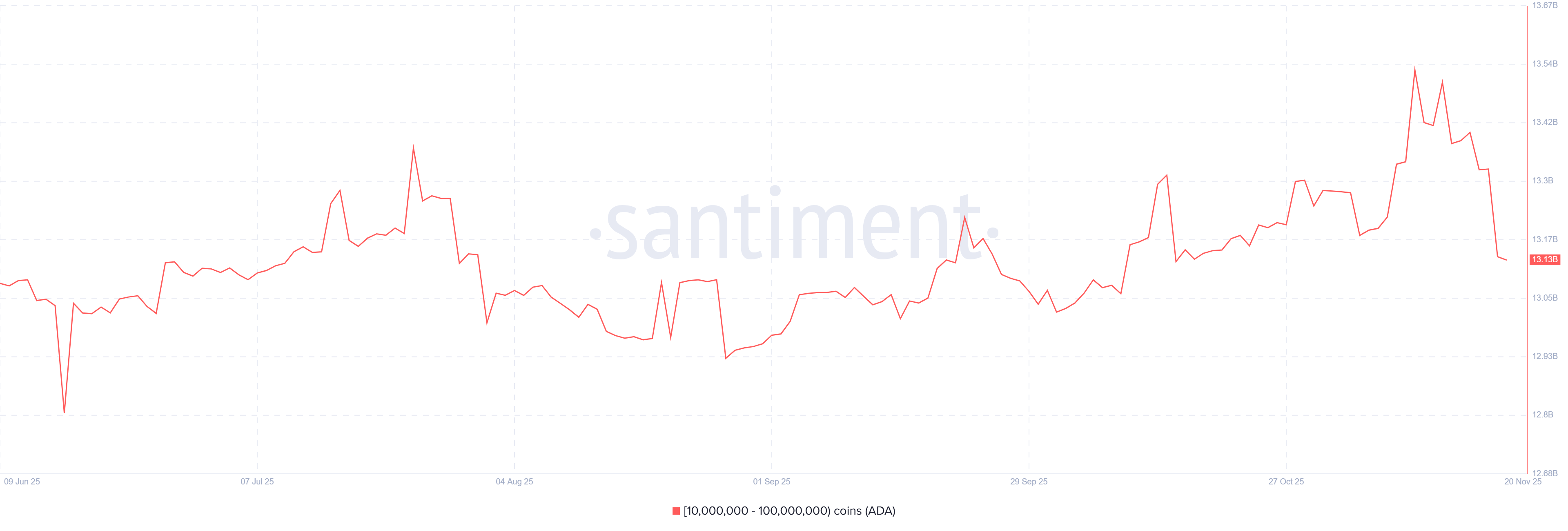 Las carteras que poseen entre 10M-100M tokens redujeron sus tenencias colectivas en 370M ADA en los últimos siete días. Este grupo había estado comprando en la caída desde mediados de octubre, solo para agotar su impulso la semana pasada.