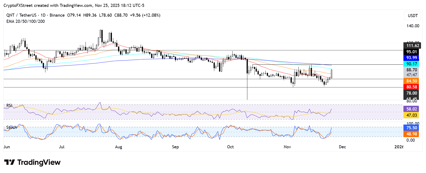 En la parte baja, QNT podría encontrar soporte alrededor de 78$. Más abajo, el soporte cerca de 70$ podría resultar crucial.