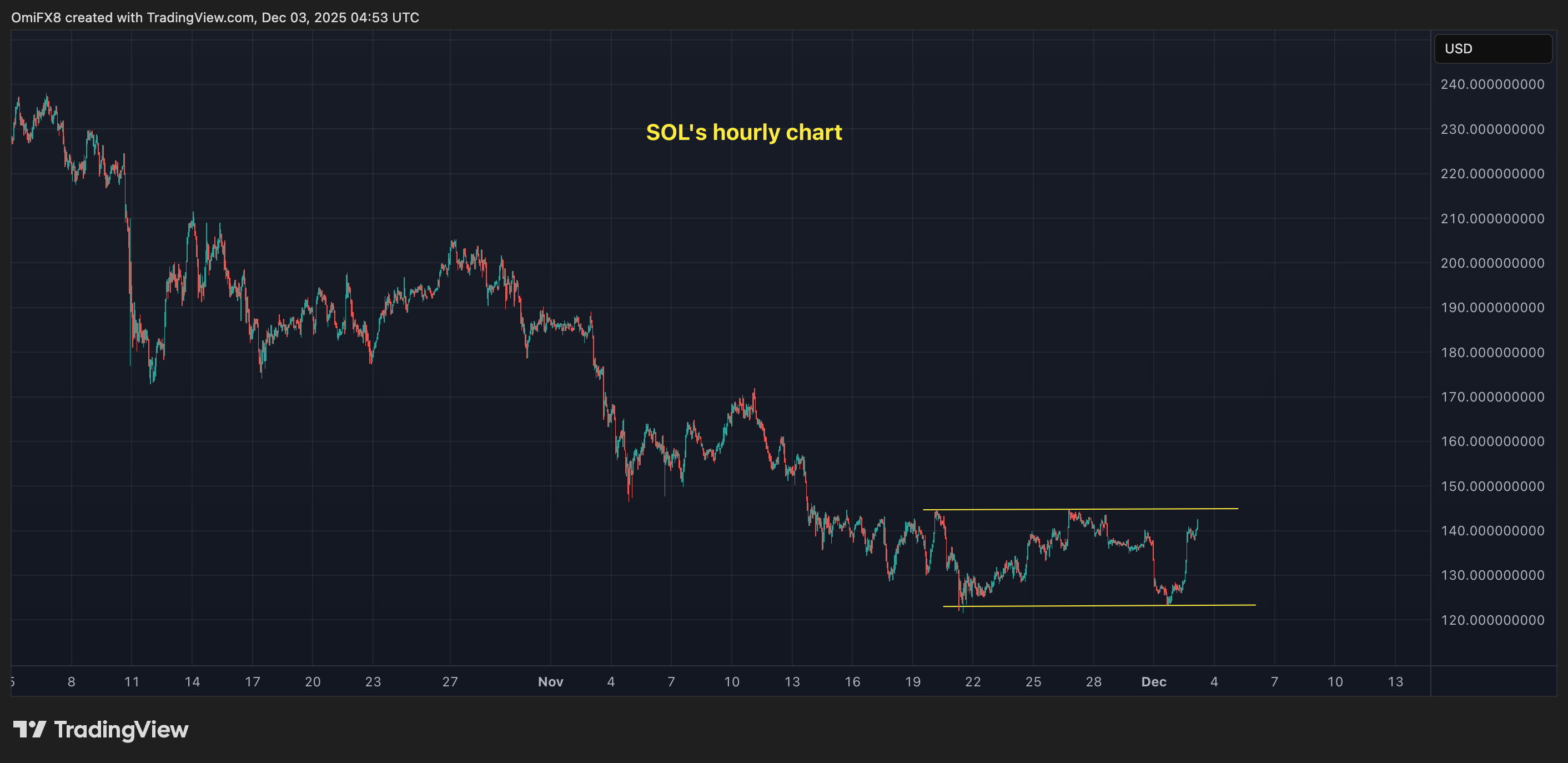 Solana SOL 127,20 parece estar acercándose al límite superior de un canal lateral bien definido cerca de $145. Un cierre decisivo por encima de este nivel abriría al alza hacia $165.