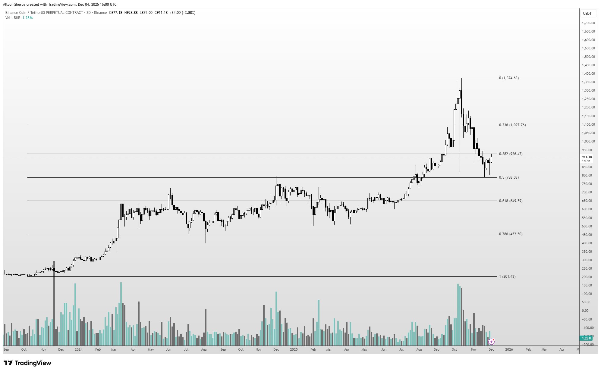 En esta etapa, BNB se muestra fuerte con su Fib 0.50, según Sherpa. BNB ha respondido constantemente de manera robusta a las recuperaciones generales del mercado y ha logrado mantenerse por encima de su ATH del ciclo anterior en comparación con muchas otras criptomonedas. El objetivo para BNB Coin es $1,097.