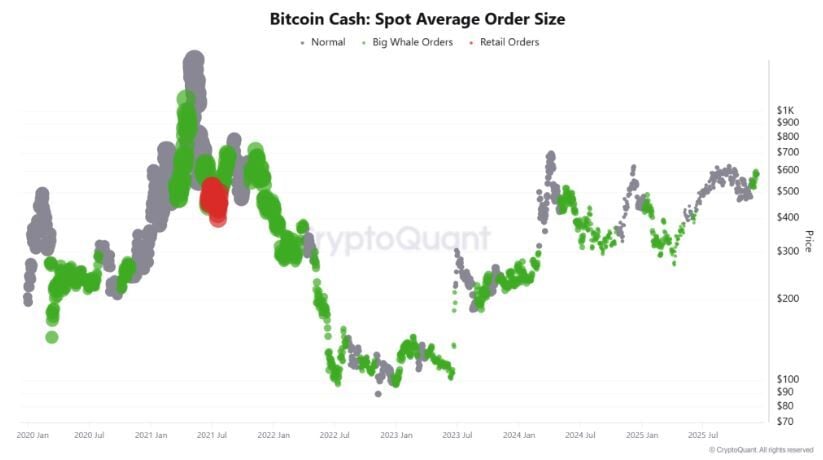 Esta renovada participación indica un posicionamiento estratégico de cara al próximo mercado alcista. La aceleración de la acumulación implica una mayor confianza en el pronóstico del precio de Bitcoin Cash a medio plazo, a medida que la estructura del mercado se prepara para una posible expansión.