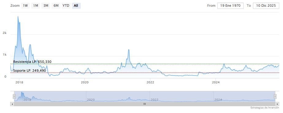 La resistencia a mediano plazo se encuentra en los 605.65 dólares. Mientras, los indicadores de Ei se muestran mixtos.