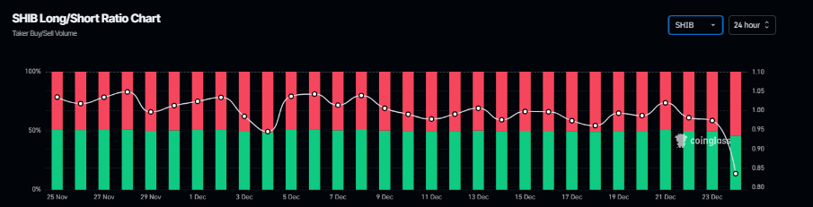 Además, la relación larga-corta de Coinglass para SHIB se sitúa en 0.83 el miércoles, el nivel más alto en más de un mes. La relación por debajo de uno sugiere un sentimiento bajista en el mercado, ya que más operadores están apostando a que el precio de la moneda meme caerá.