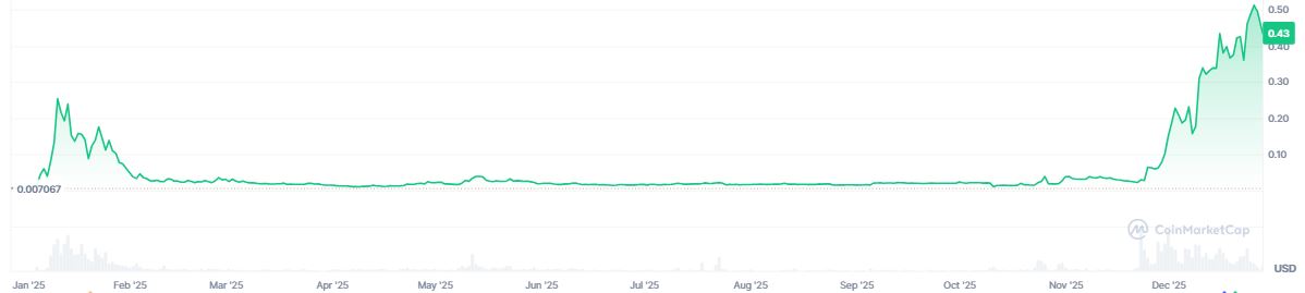 En este contexto, PIPPIN, una memecoin que opera sobre la red Solana, lideró el ranking anual de mayores subas. Un escalón por debajo se ubicaron el token AB y zcash (ZEC), que completaron el podio de los activos con mejor desempeño.