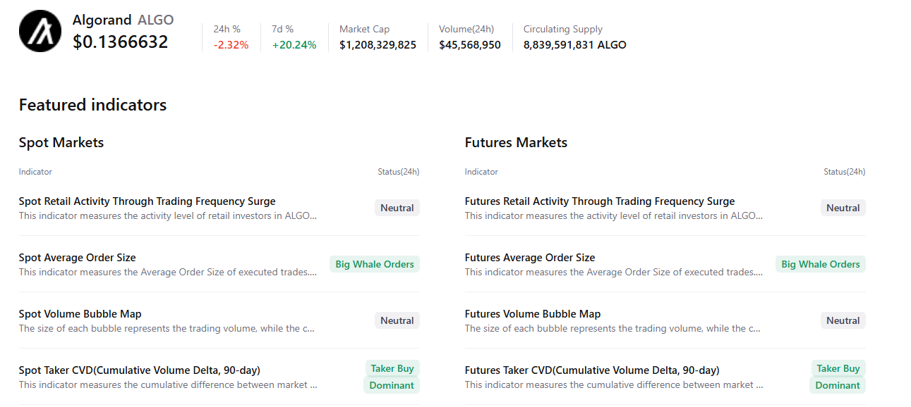 Además, los datos resumidos de CryptoQuant también respaldan la perspectiva positiva, ya que los mercados al contado y de futuros de ALGO muestran grandes órdenes de ballenas y dominancia de compra, señalando un posible repunte en los próximos días.