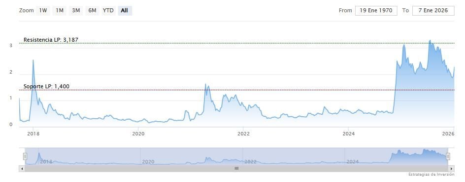 La resistencia a mediano plazo se encuentra en los 2.68 dólares. Mientras, los indicadores de Ei se muestran en su mayoría alcistas.