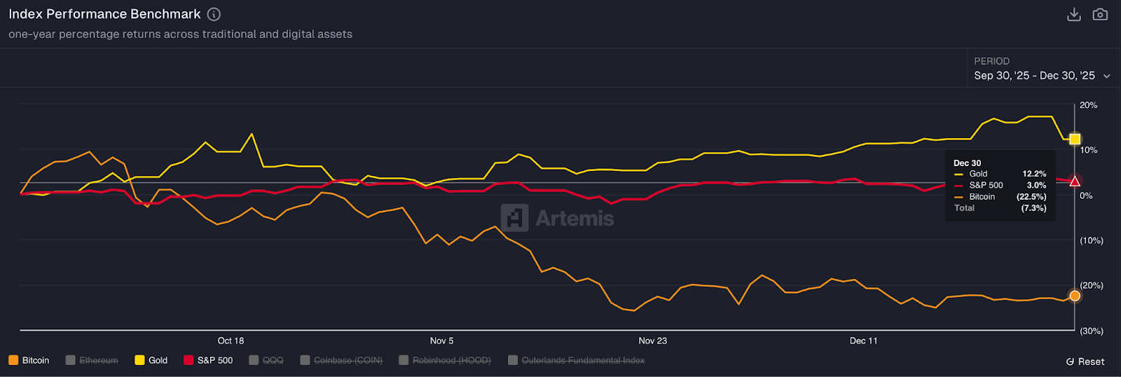Durante gran parte del cuarto trimestre de 2025, la confianza en el mercado de criptomonedas se mantuvo desalentadora, en gran parte debido al bajo rendimiento durante un período en el que muchos se habían posicionado para untronpotencial alcista. La liquidación del 10 de octubre supuso un duro golpe para la confianza, y las lentas caídas posteriores solo aumentaron la presión. Además, las criptomonedas comenzaron a desvincularse deltronimpulso que observamos hacia finales del año pasado en los activos tradicionales, incluyendo la renta variable estadounidense y materias primas como el oro y la plata.