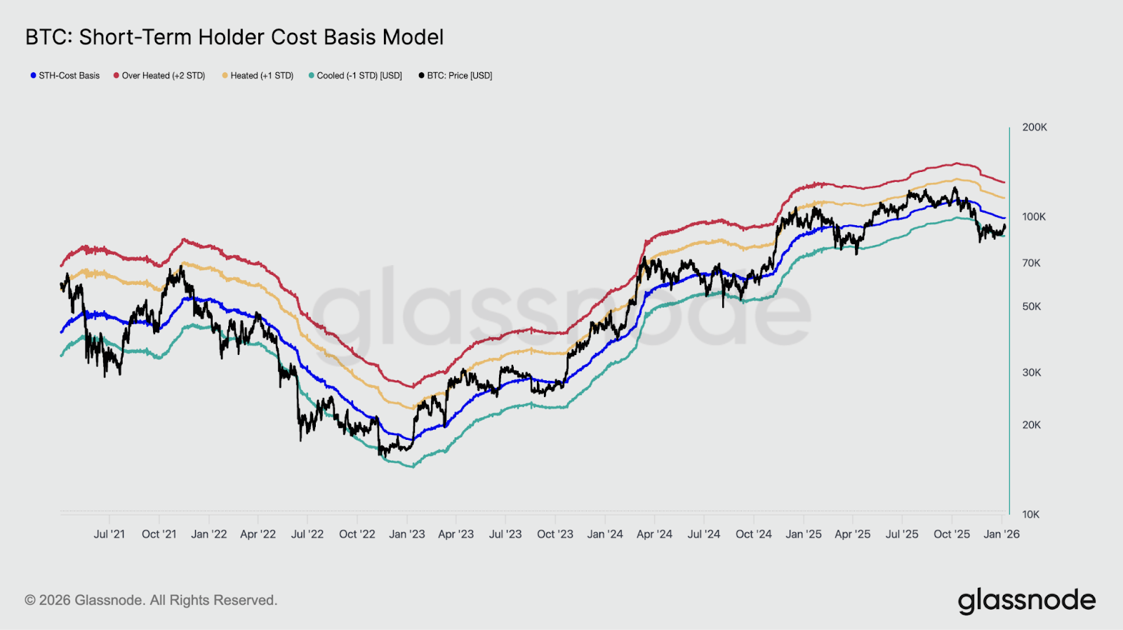 Para observar realmente un cambio de sentimiento sostenido, podemos usar el modelo de base de costo del tenedor a corto plazo como referencia. Este es un indicador on-chain que muestra el precio promedio al que los compradores recientes Bitcoin (que mantuvieron sus monedas durante menos de cinco meses) adquirieron sus monedas. Cuando el precio supera este nivel, los compradores recientes generalmente mantienen su perfil, mientras que por debajo aumenta la presión de venta, ya que tienen pérdidas. Dado que muestra dónde se posicionan los compradores recientes, puede ser una herramienta de sentimiento muy útil. Actualmente, este nivel se encuentra en $98.7K.