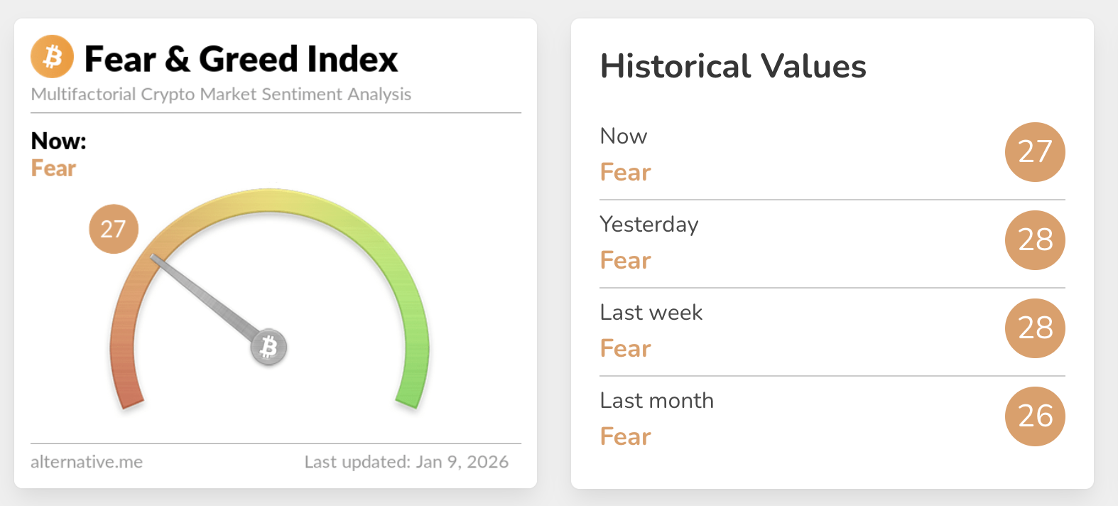 Una perspectiva ampliada del mercado de criptomonedas sugiere una creciente incertidumbre, evidenciada por la falta de confianza de los inversores. El Índice de Miedo y Codicia Cripto está en 27 el viernes, confirmando que los inversores siguen preocupados.