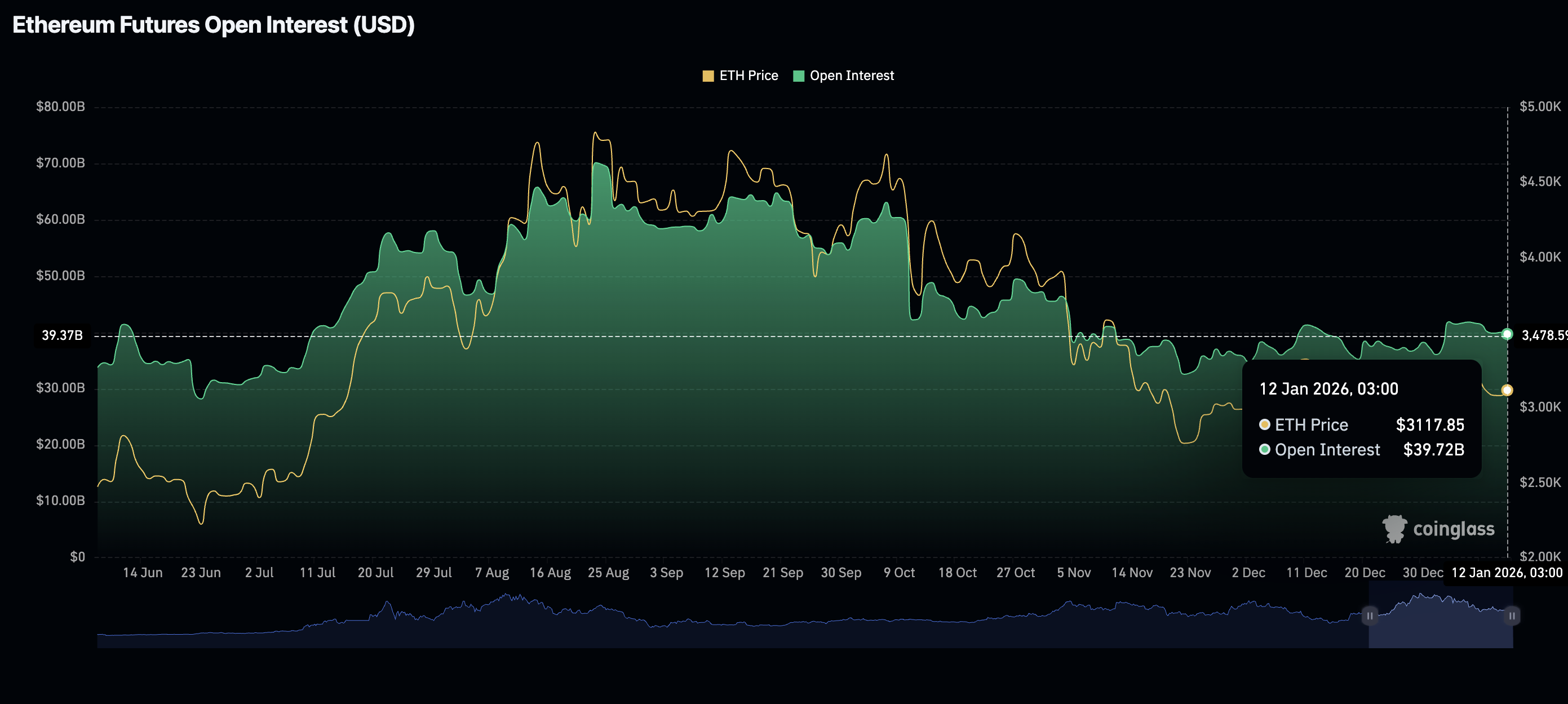 Sin embargo, los datos de CoinGlass muestran que la demanda minorista se está reduciendo, como lo demuestra la caída del Interés Abierto (OI) de futuros a 39.72 mil millones de dólares el lunes, desde 40 mil millones de dólares el domingo. La demanda de derivados de ETH ha estado disminuyendo gradualmente desde el comienzo del año, cuando el OI promedió 41.89 mil millones de dólares el 3 de enero.