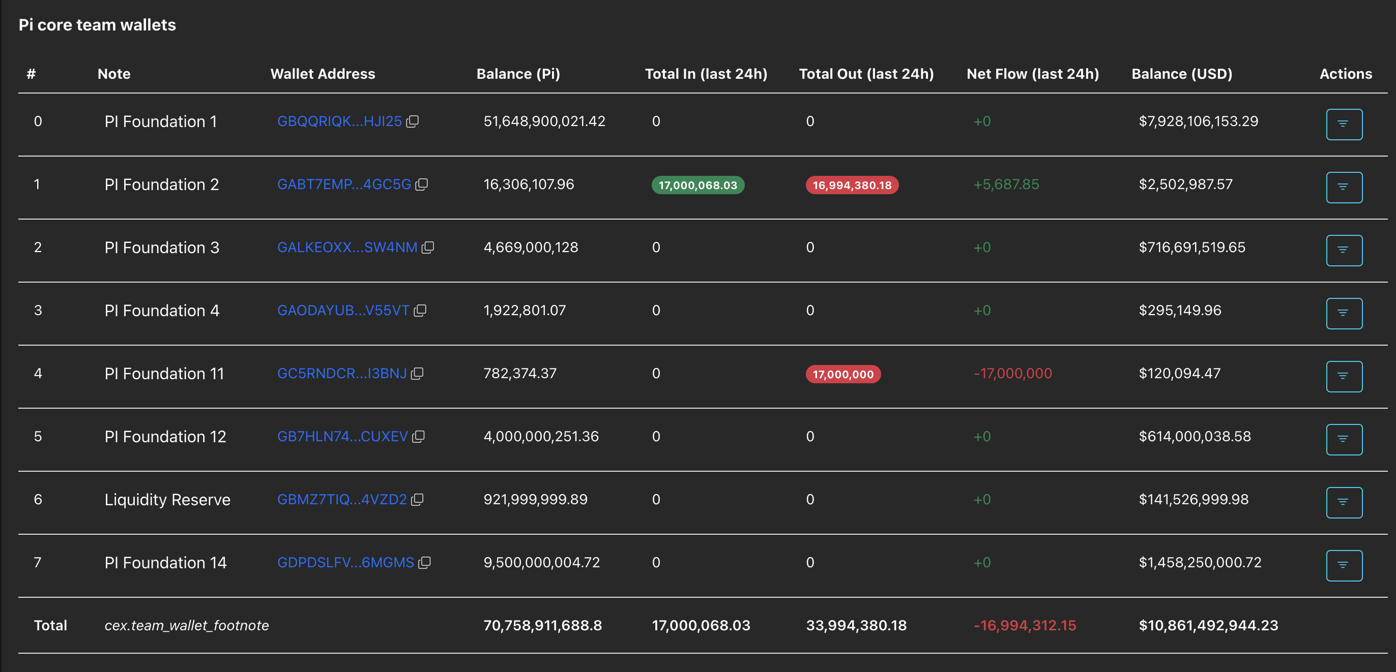 Los datos de PiScan muestran que las carteras de la Fundación Pi vendieron 16.99 millones de tokens PI en el mercado en las últimas 24 horas. Típicamente, una reducción en las tenencias del equipo central tiene un impacto negativo en el sentimiento minorista.