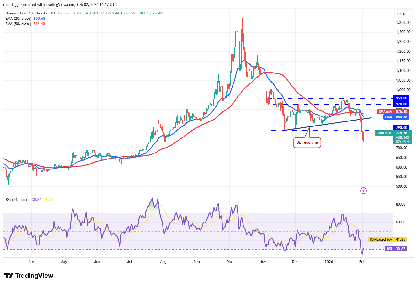 $BNB ($BNB) se desplomó por debajo de la línea de tendencia alcista y el soporte de 790 dólares el sábado, lo que indica una venta agresiva por parte de los bajistas.