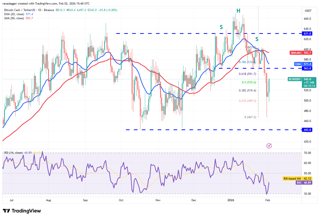 Los alcistas han iniciado un repunte de alivio, que se espera que enfrente resistencia en la zona entre el nivel de retroceso de Fibonacci del 50% de 535 dólares y el nivel de retroceso del 61,8% de 551 dólares. Si el precio de Bitcoin Cash retrocede desde la zona de resistencia, los bajistas intentarán llevar el par $BCH/$USDT por debajo de los 500 dólares.