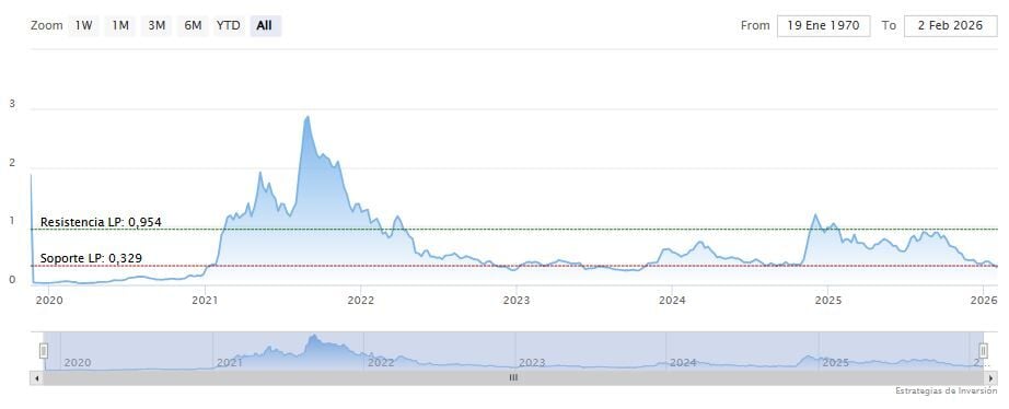 El precio ha roto el soporte a mediano y largo plazo. Mientras, los indicadores de Ei se muestran mixtos.