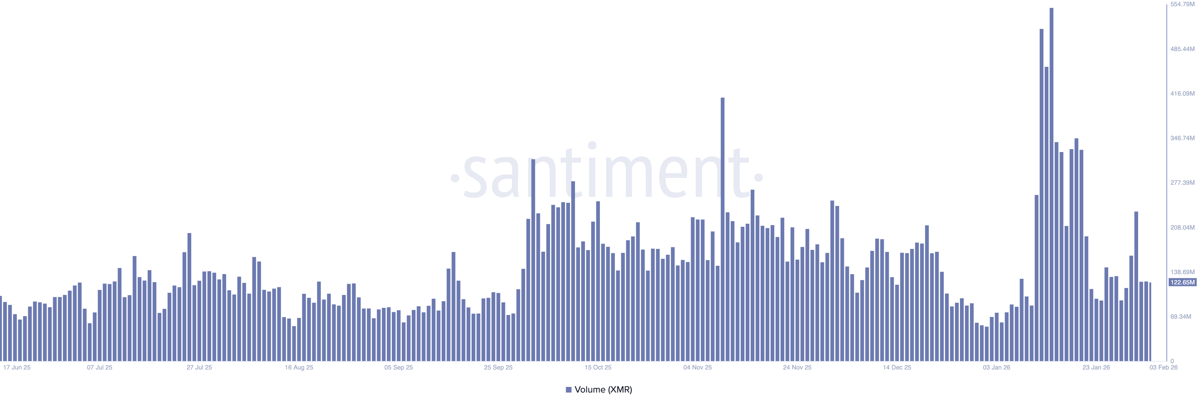 Sin embargo, los datos de Santiment indican que el volumen de negociación de Monero se sitúa cerca de 122 millones de dólares el martes, por debajo del pico de 232$ alcanzado el 31 de enero, sugiriendo un alivio en la presión de venta. Típicamente, los picos en el volumen de negociación durante una tendencia a la baja señalan una venta masiva, como se observó el 14 y 31 de enero.
