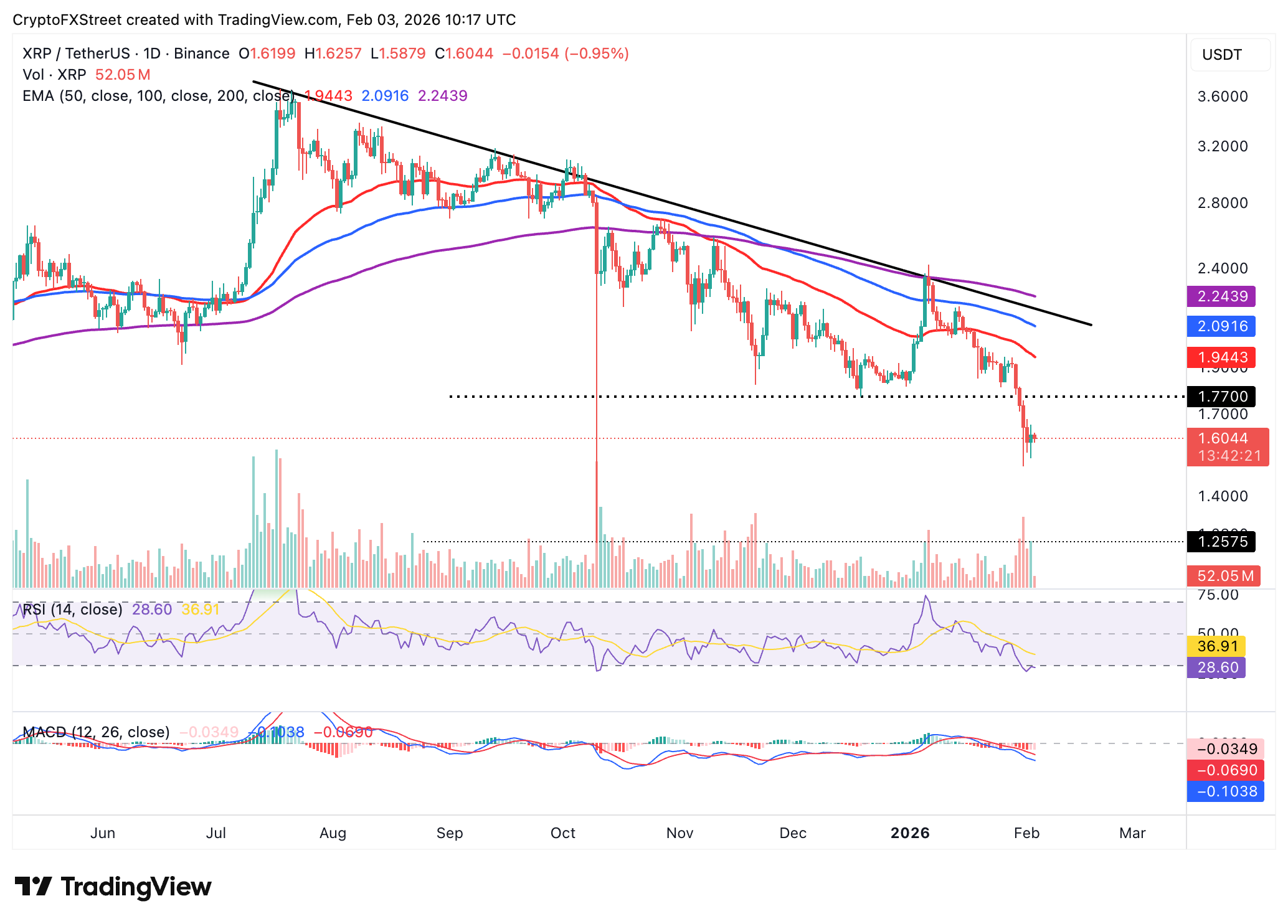 En cuanto a $XRP, los toros se aferran al soporte inmediato en 1.60 $ después de que la recuperación se detuviera en el máximo del lunes de 1.66 $. El camino con menos fricción sigue siendo a la baja, subrayando la EMA de 50 días en 1.94 $, la EMA de 100 días en 2.09 $ y la EMA de 200 días en 2.24 $.
