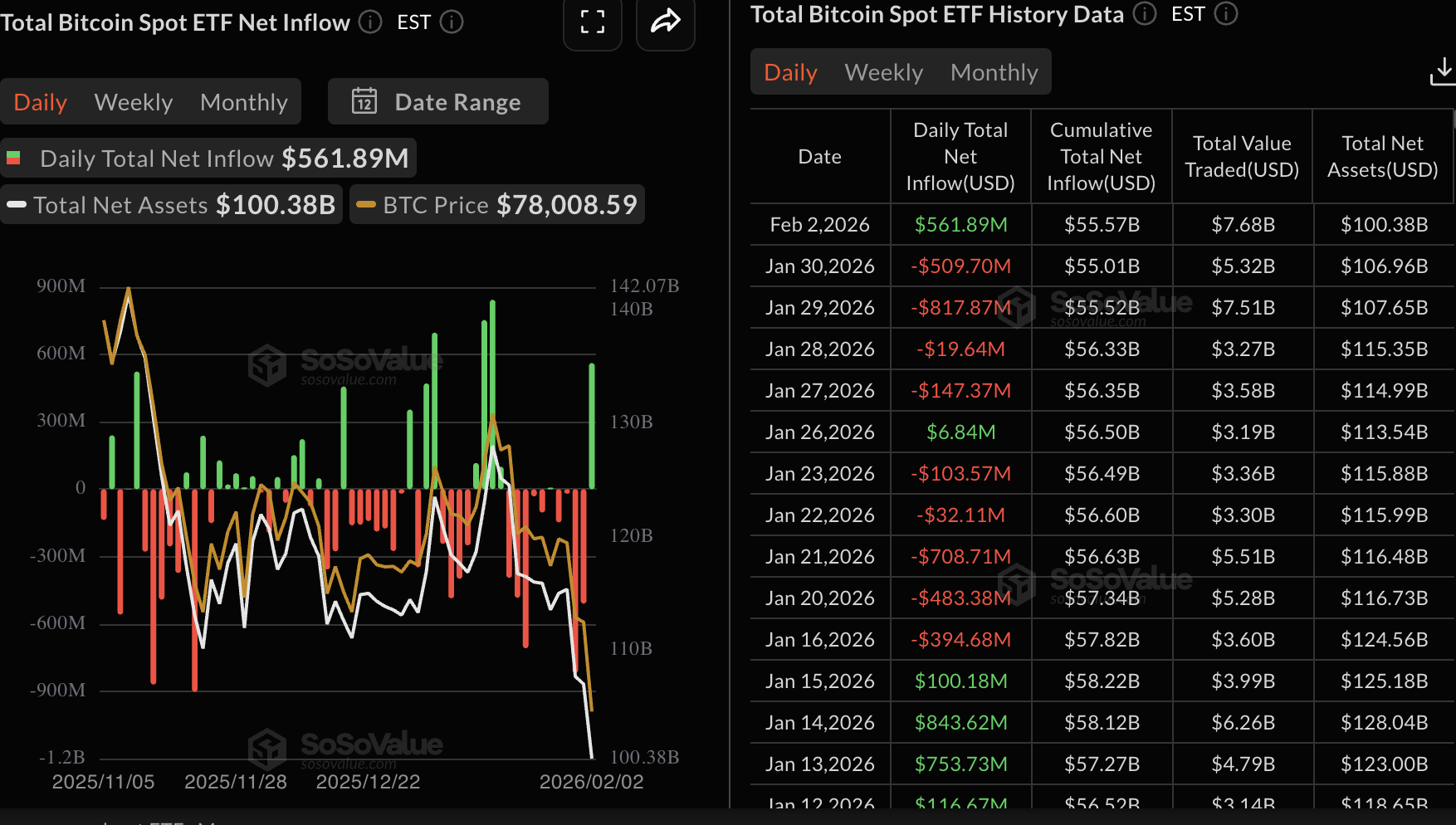 El Bitcoin ($BTC) se cotiza por encima de 78.000$ en el momento de escribir el martes, mientras se asienta el polvo de la turbulencia de la semana pasada. El interés institucional en $BTC está mejorando evidentemente, apoyado por el resurgimiento de entradas en fondos cotizados en bolsa (ETFs) al contado.