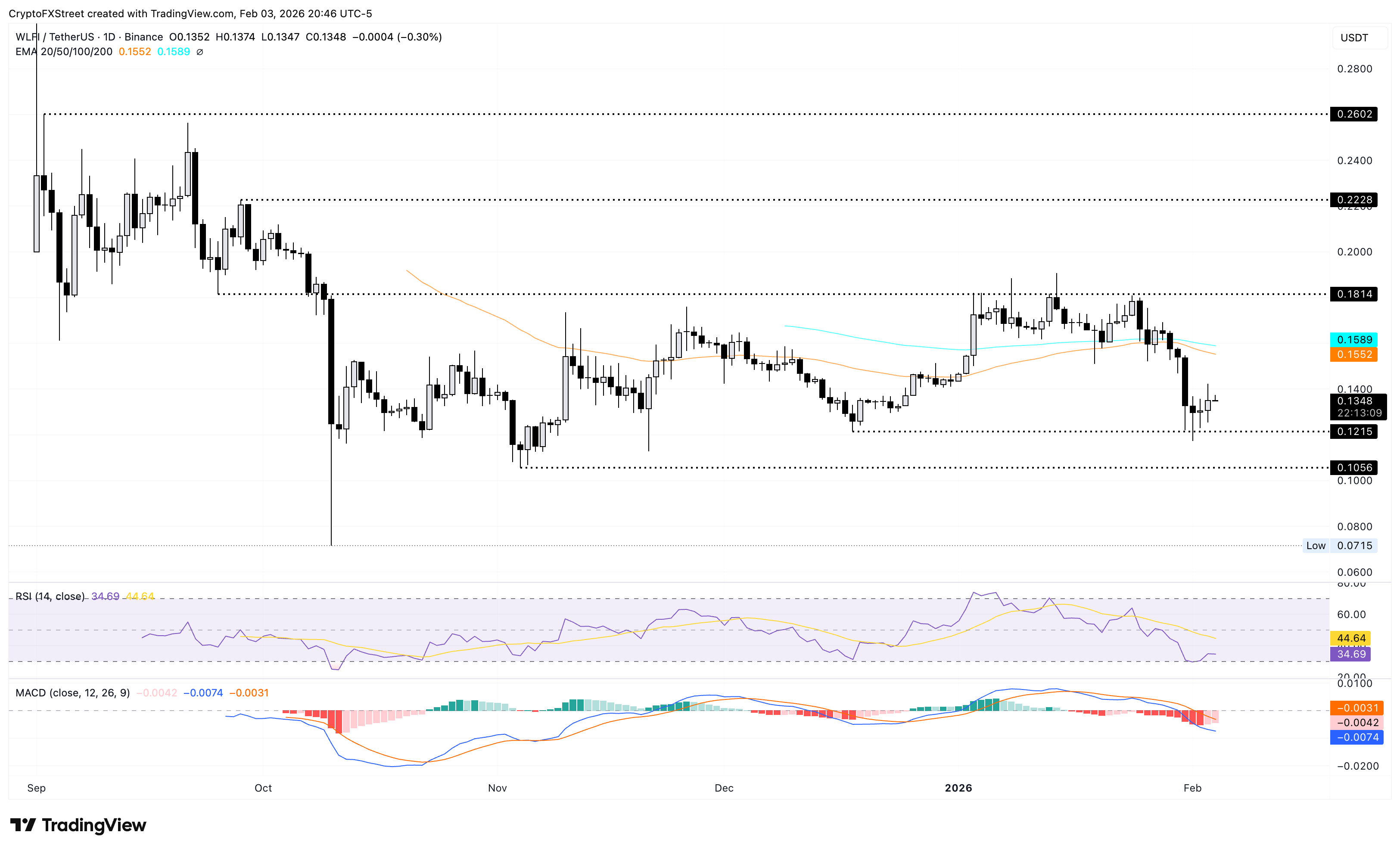 Mirando hacia abajo, si $WLFI cae por debajo del soporte de 0.1215$, coincidiendo con el mínimo del 18 de diciembre, correría el riesgo de una mayor caída hacia el Punto Pivote S1 en 0.1062$.