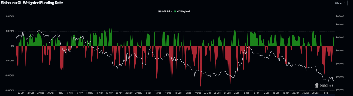 De manera similar, el mercado de derivados es cauteloso. Los datos de CoinGlass muestran que la tasa de financiación de $SHIB se volvió positiva el miércoles, actualmente en 0.0088%, lo que indica que las posiciones largas están pagando a las cortas y sugiere un sentimiento alcista. Sin embargo, la relación larga-corta ha caído a 0.87 en el mismo período, señalando un aumento en las apuestas cortas. Esta divergencia resalta la creciente incertidumbre en el mercado de derivados y debilita la convicción alcista.