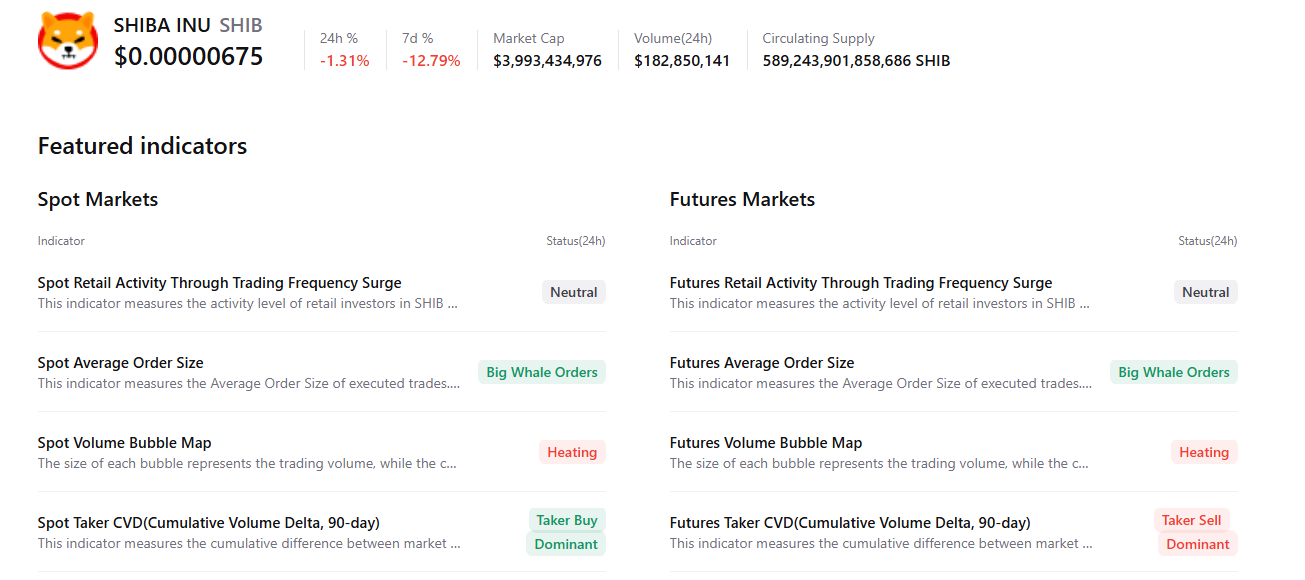 Los datos resumidos de CryptoQuant sugieren que el sentimiento de la moneda meme con temática de perro entre los operadores es mixto. Si bien hay grandes órdenes de ballenas en los mercados al contado y de futuros, lo que sugiere un interés alcista, las condiciones de sobrecalentamiento y la creciente dominancia del lado vendedor indican que la presión de venta sigue siendo elevada. Esta combinación sugiere indecisión entre los inversores de monedas meme y limita las posibilidades de una recuperación sostenida.