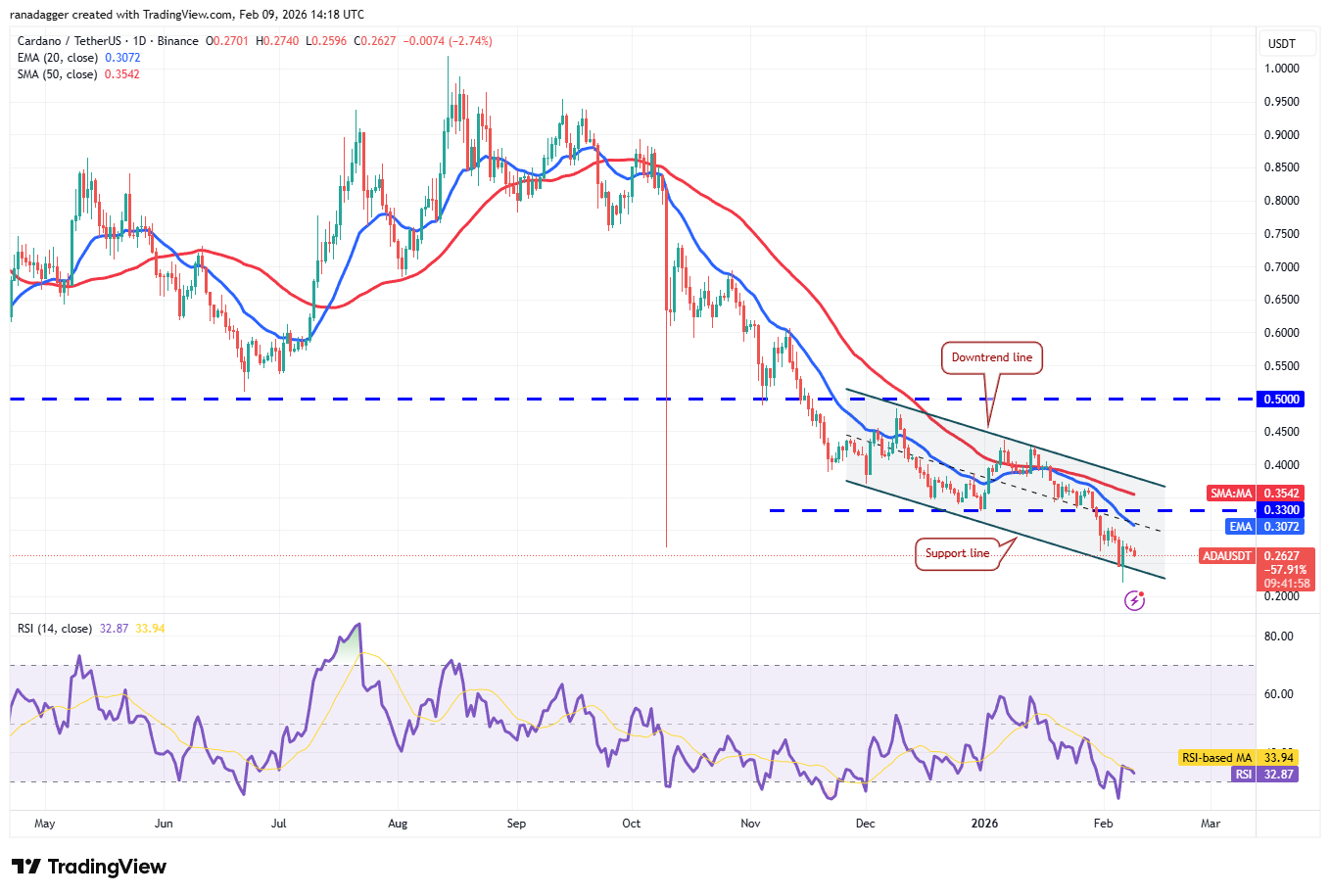 El ligero rebote de Cardano ($ADA) desde la línea de soporte del patrón de canal descendente indica que los bajistas están vendiendo en los repuntes.