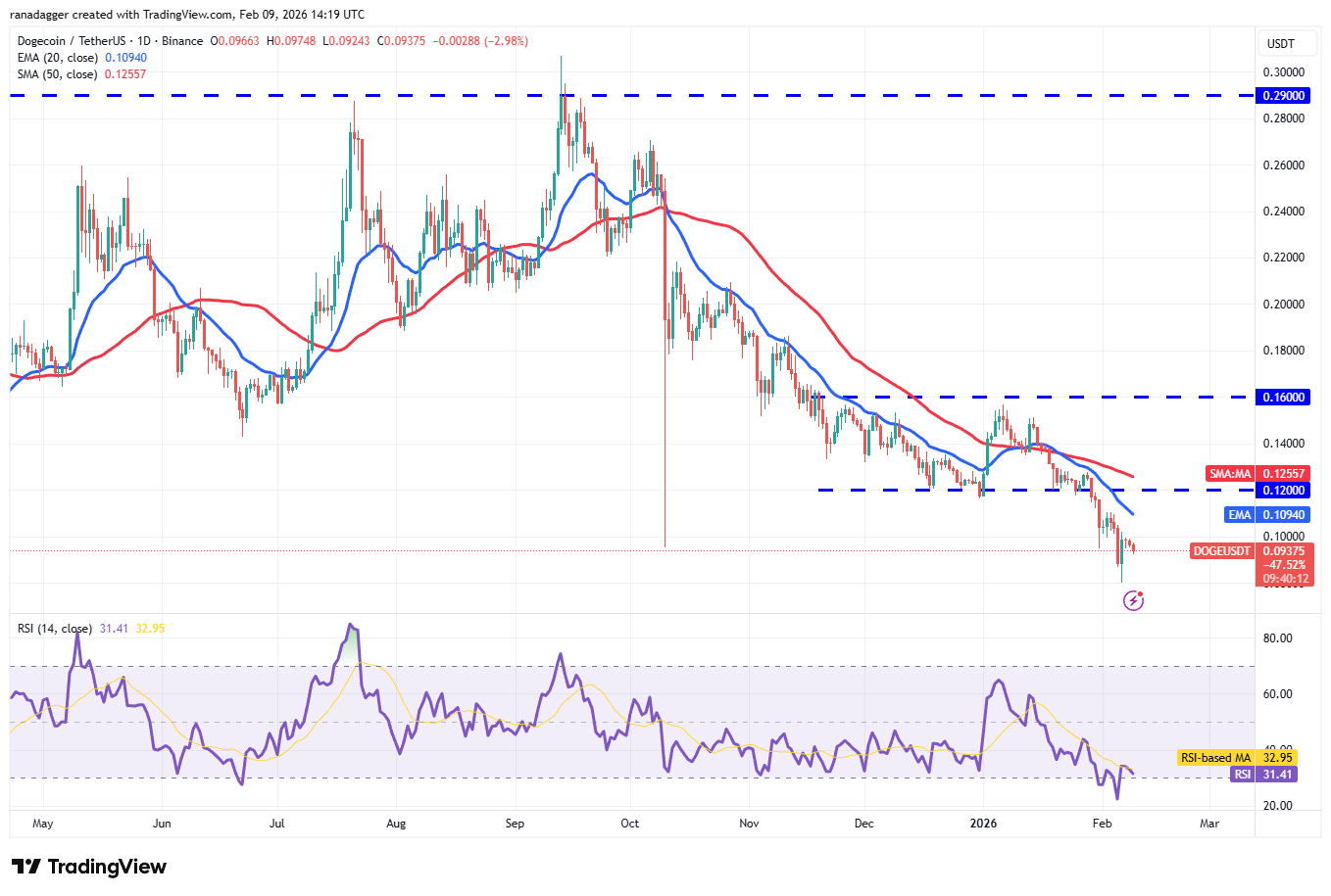 Los vendedores están intentando detener el repunte de alivio de Dogecoin ($DOGE) en el nivel psicológico de 0,10 dólares.
