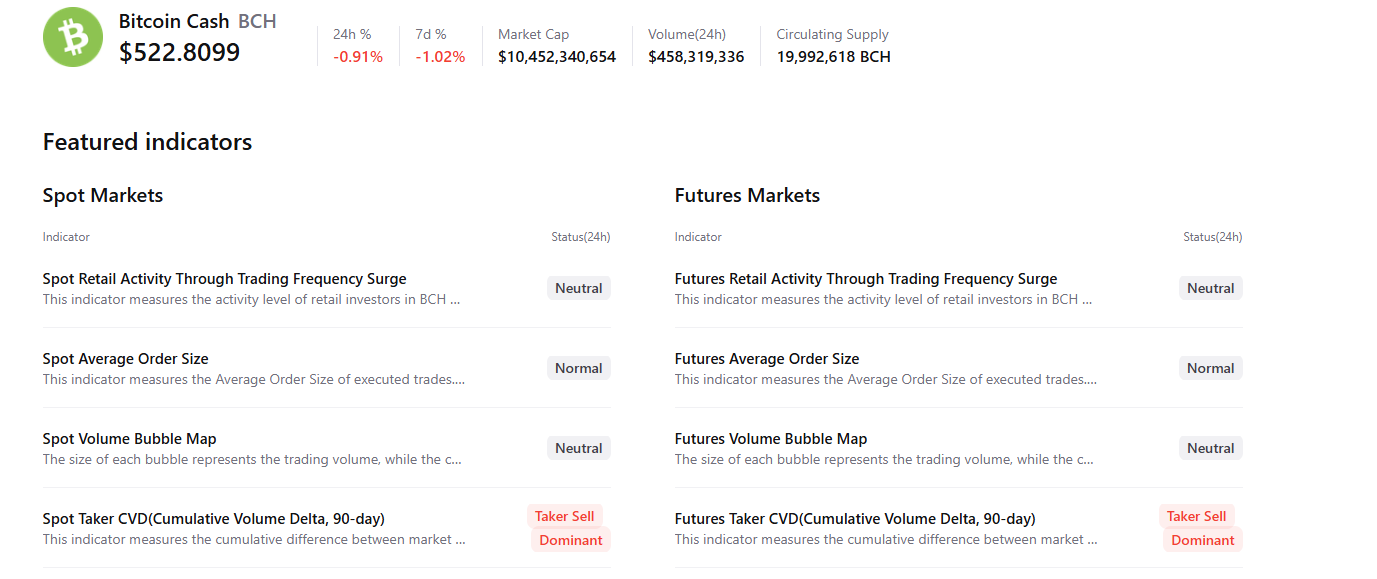 Los datos resumidos de CryptoQuant respaldan la perspectiva negativa, ya que los mercados al contado y de futuros de $BCH muestran dominancia de ventas, señalando una corrección por delante.